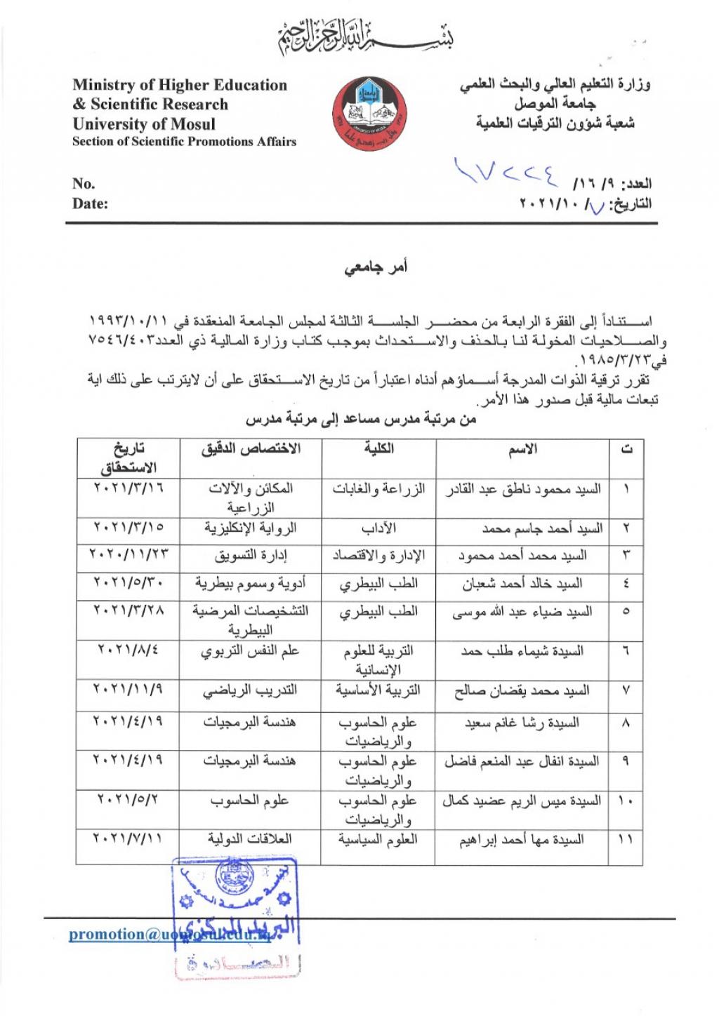 تهنئة لتدريسي من كليتنا بمناسبة ترقيته العلمية.