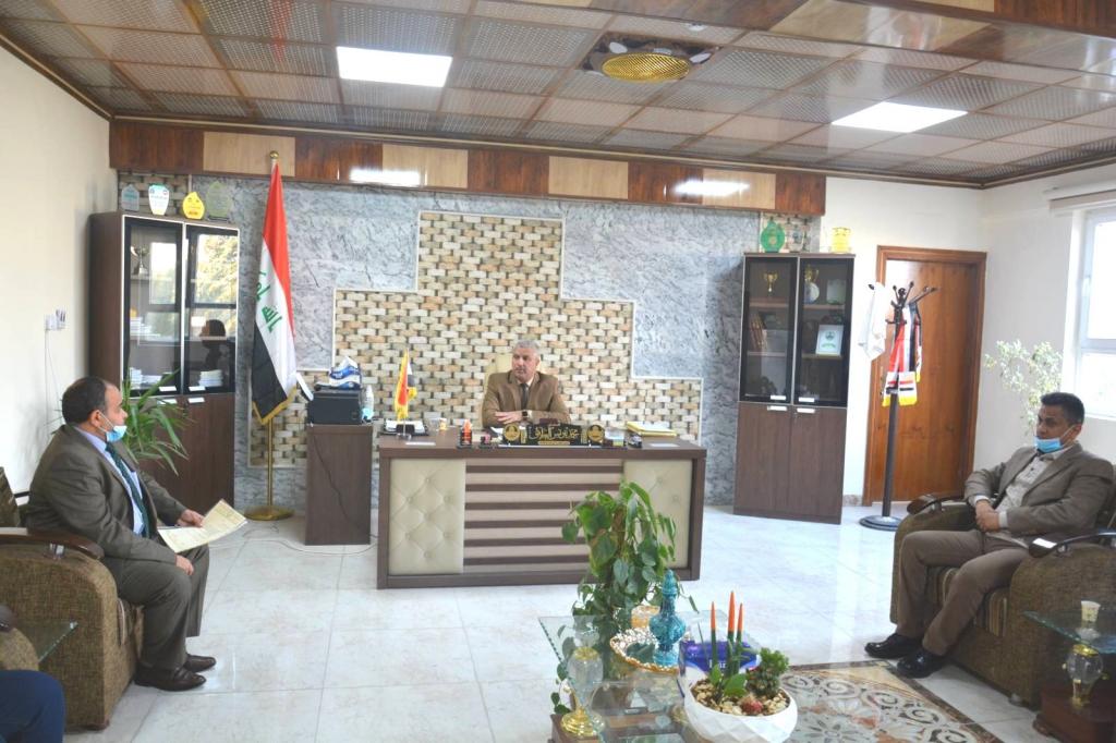 استقبل السيد عميد الكلية الدكتور محمد يونس العلاف اليوم في مكتبه الدكتور خالد ناجي العسل رئيس مجلس ادارة مؤسسة الاغصان للتنمية الزراعية والبيئية بحضور الدكتور اياد هاني العلاف مسؤول شعبة الاعلام والعلاقات العامة في كليتنا ، وتم خلال اللقاء التوقيع على اتفاقية تعاون بين الجانبين ضمن مشروع تدريب الطلبة الخريجين تتضمن قيام مؤسسة الاغصان بتدريب الطلبة الخريجين في البيوت المحمية العائدة للكلية اذ يتم اعداد الحقيبة التدريبية يتم مصادقتها من قبل عمادة الكلية ، كما تتضمن قيام المؤسسة بإكمال تغطية البيوت المحمية وربط منظومة الري فيها وإجراء عمليات الخدمة للمحاصيل التي سيتم زراعتها .