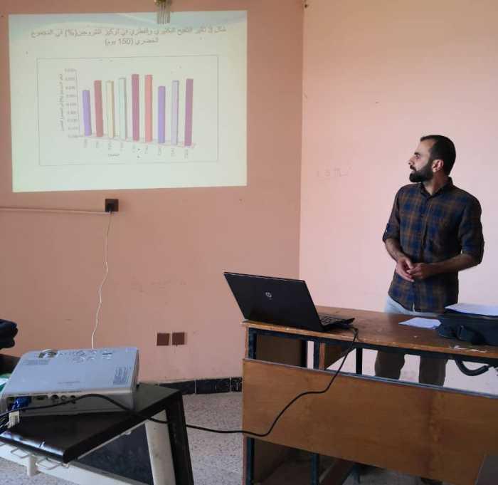 ضمن الحلقات الدراسية لطلبة الدراسات العليا في قسم علوم التربة والموارد المائية القى طالب الماجستير بسمان وسام عزيز حلقه دراسية بعنوان (دور البكتريا والفطريات في جاهزية النتروجين لنبات الشعير) بأشراف الدكتور توفيق بشير السلمان وقد حضر المناقشة عدد من تدريسي القسم.