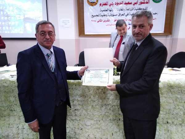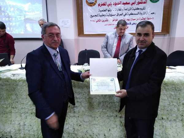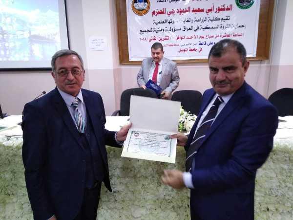 برعاية كريمة من لدن السيد رئيس جامعة الموصل الاستاذ الدكتور أبي سعيد الديو ه جي المحترم ومتابعة السيد عميد الكلية الدكتور سهل كوكب الجميل وبحضور مجلس الجامعة أقامت كلية الزراعة والغابات ندوتها العلمية بعنوان (حماية الثروة السمكية في العراق مسؤولية وطنية للجميع) على قاعة عمادة كلية الاداب في جامعة الموصل ، بدأت الندوة بتلاوة ايات من الذكر الحكيم تلاها الدكتور مثنى احمد الطيب التدريسي في قسم الثروة الحيوانية ثم تلتها كلمة السيد عميد كلية الزراعة والغابات رئيس اللجنة التحضيرية اكد فيها على اهمية اقامة هذه الندوة في هذا الوقت والتي تزامنت مع التحديات التي تواجهها الثروة السمكية في المنطقتين الوسطى والجنوبية من العراق من خلال نفوق الكثير منها داعيا الى وضع الحلول الناجحة في سبيل الحفاظ على هذه الثروة ، وقدم السيد العميد خلال كلمته شكره وتقديره للسيد رئيس الجامعة لرعايته الكريمة لإعمال هذه الندوة ، ثم القى الدكتور محمود احمد الجبوري محاضرة الافتتاح بعنوان ( تربية الاسماك في الاقفاص ، شروط اقامتها وعوامل نجاحها ) ، وبعد استراحة قصيرة بدأت جلسة المحاضرات برئاسة الاستاذ الدكتور صائب يونس ومقررية الدكتور صميم فخري الدباغ وتضمنت المحاضرات التالية :محاضرة بعنوان ( بيئة الاسماك وملوثاتها ) للدكتور نضال تحسين الطائي / كلية الزراعة والغابات / جامعة الموصل .محاضرة بعنوان ( أمراض أسماك الاقفاص – المسببات ) للأستاذ الدكتورة آلاء حسين الحمداني / كلية الطب البيطري / جامعة الموصل .محاضرة بعنوان (أمراض أسماك الاقفاص – السيطرة والعلاج ) للدكتورة شهباء خليل الطائي / كلية الطب البيطري / جامعة الموصل .وفي نهاية الندوة القيت التوصيات وقام السيد العميد بتسليم شهادات المشاركة والتقدير على المشاركين وأعضاء اللجنة التحضيرية .