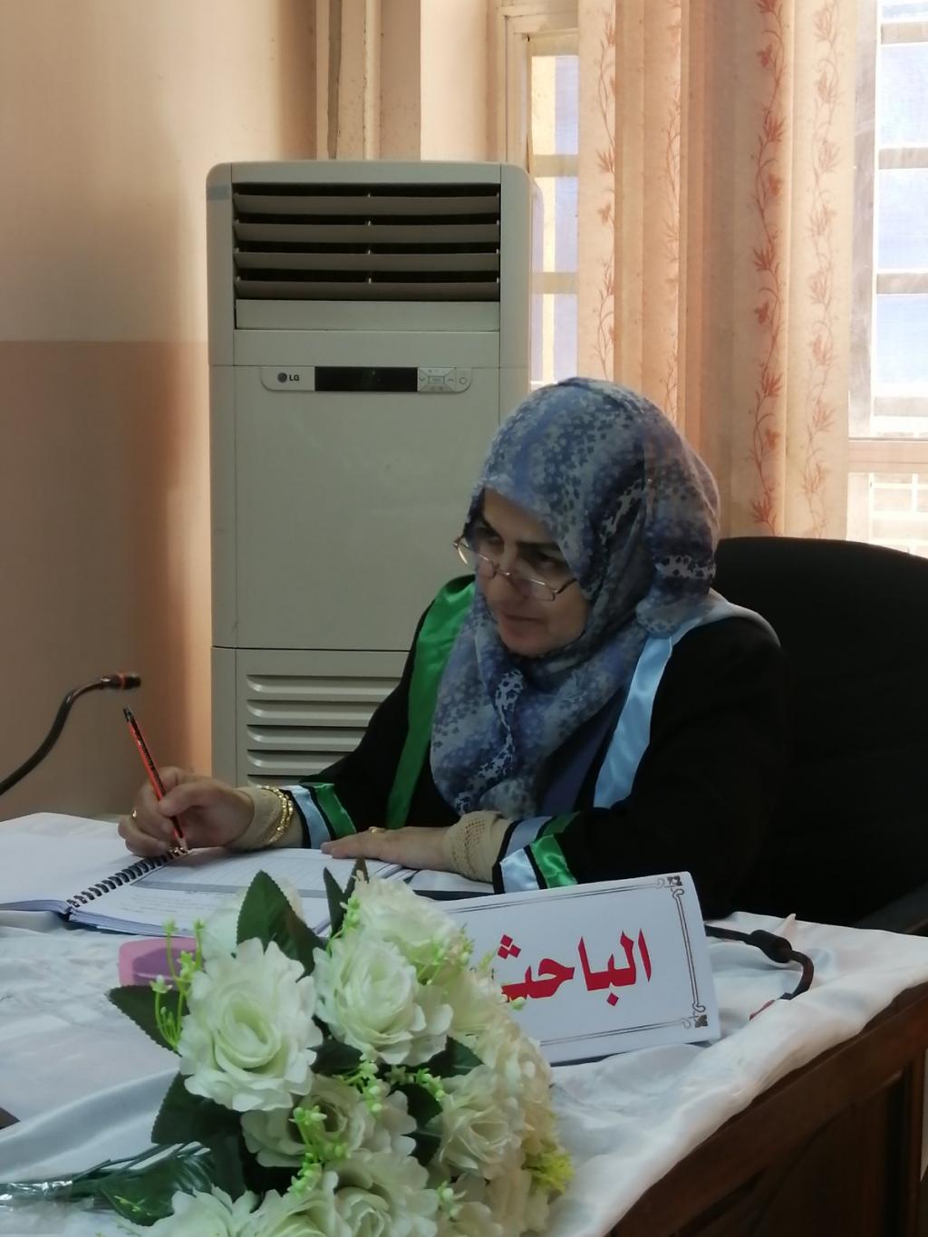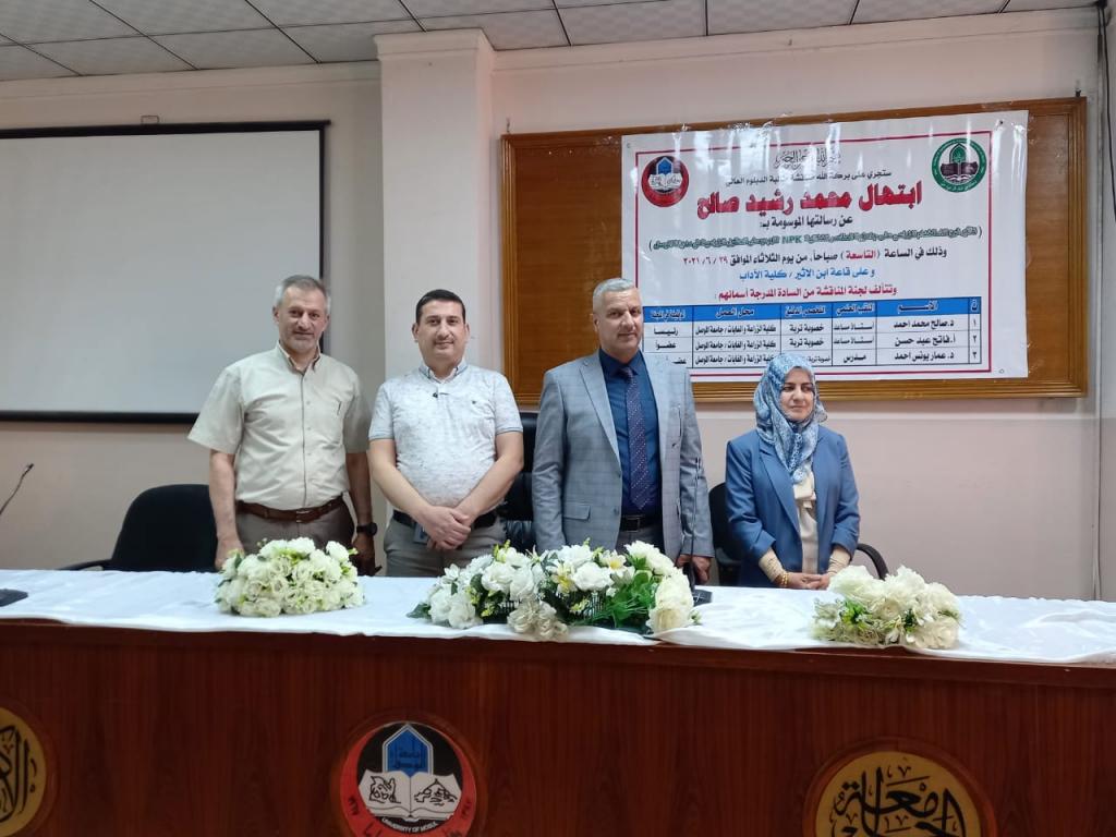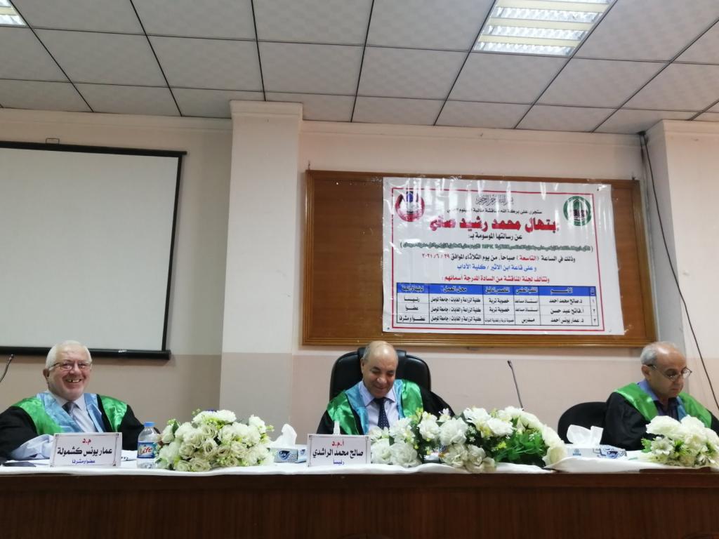 حيث ترأس لجنة المناقشة الدكتور صالح محمد الراشدي وعضوية الاستاذ المساعد فاتح عبد حسن وبأشراف الدكتور عمار يونس كشمولة