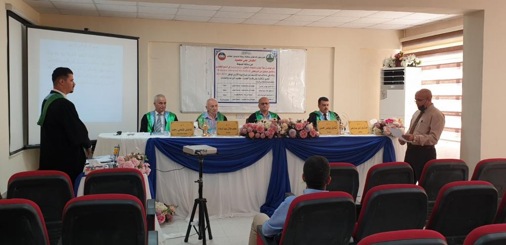 هذا وترأس لجنة المناقشة الأستاذ الدكتور شامل يونس حسن وعضوية كل من الاستاذ الدكتور محمد طلال عبدالسلام الحبار والأستاذ الدكتور حارث برهان الدين عبدالرحمن وبإشراف الاستاذ الدكتور فاضل فتحي رجب.