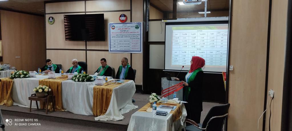 وترأس لجنة المناقشة الدكتور قاسم محمود محمد وعضوية الدكتور عباس علو خصر والدكتور ميسر محمد عزيز وبإشراف الأستاذ الدكتور سالم حمادي عنتر.