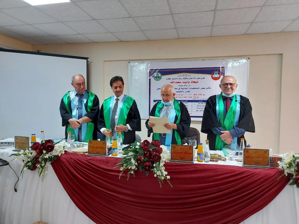 هذا وترأس لجنة المناقشة الأستاذ الدكتور عبدالله محمد ذنون وعضوية الأستاذ الدكتور مازن محمد إبراهيم والأستاذ الدكتور محفوظ خليل عبدالله وبأشراف الدكتور ثامر عبدالقادر.