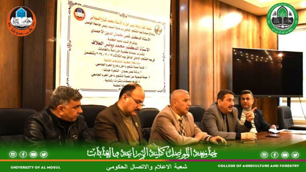 تنفيذاً لقرار دولة رئيس الوزراء الأستاذ محمد شياع السوداني بإطلاق مبادرة يوم التشجير الوطني وبرعاية السيد رئيس جامعة الموصل الاستاذ الدكتور قصي كمال الدين الاحمدي وبإشراف السيد عميد الكلية الاستاذ الدكتور محمد يونس العلاف أقامت شعبة الإعلام والاتصال الحكومي في كليتنا اليوم الثلاثاء ١٢ / ٣ / ٢٠٢٤ ورشة عمل وجلسة حوارية بعنوان ( الشجرة حياتنا ) حضر جانب منها السيد عميد الكلية الاستاذ الدكتور محمد يونس العلاف ومعاونيه العلمي والاداري وعدد كبير من منتسبي وطلبة كليتنا.