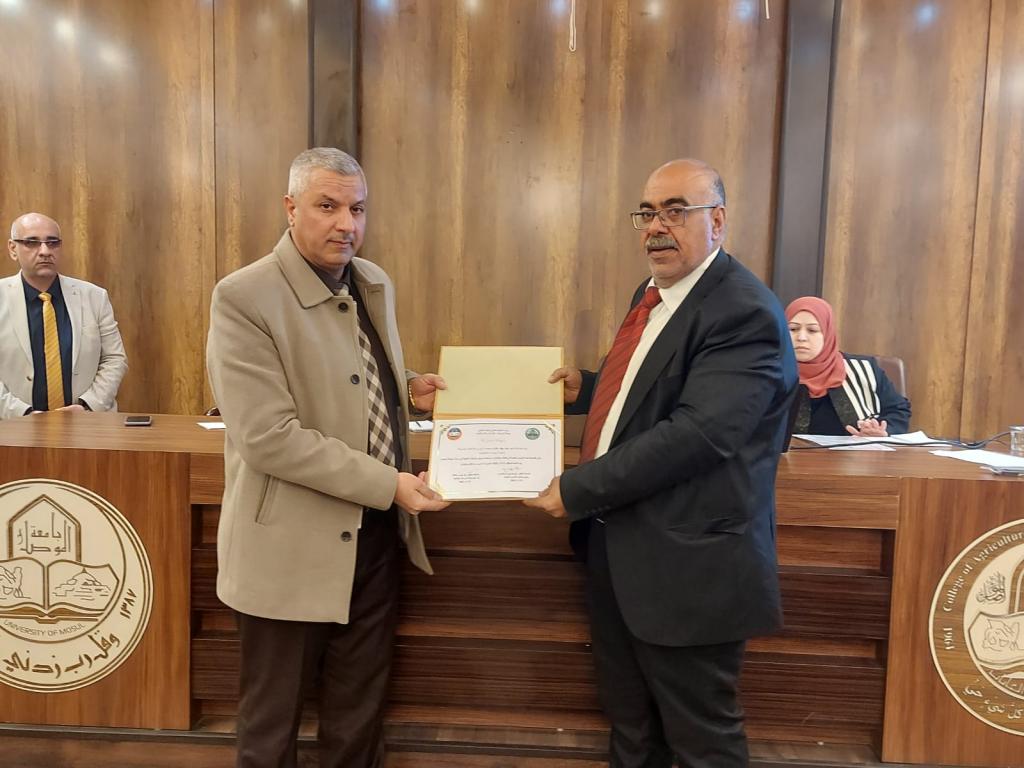 وقد قدم السيد العميد شهادة تقديرية للسيد عمار مسؤول شعبة تسويق النتاجات العلمية في رئاسة الجامعة شاكرا له جهوده الطيبة في هذه الورشة.