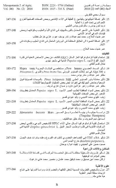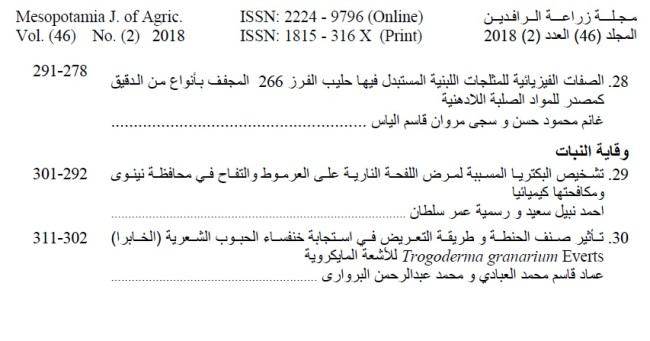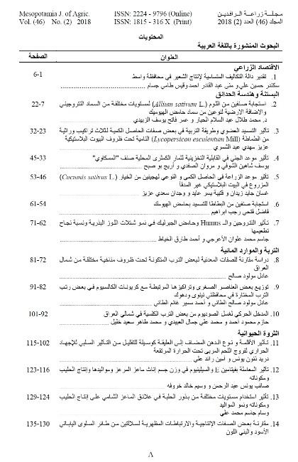 صدر عن كلية الزراعة والغابات في جامعة الموصل المجلد السادس عشر من العدد الثاني لسنة 2018من مجلة زراعة الرافدين وهي مجلة علمية محكمة تعنى بالعلوم الزراعية، وتضمن العدد (30) بحثا باللغة العربية واللغة الانكليزية لمختلف البحوث الزراعية ، هذه دعوة للباحثين الاكارم بمراجعة سكرتارية المجلة للحصول على نسخة من بحوثهم مع تمنياتنا للجميع بالموفقية .