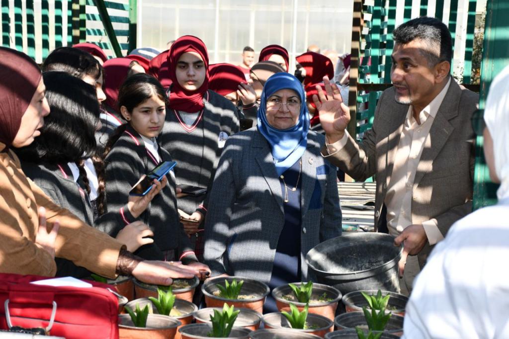 من جانبها قدمت مديرة المدرسة السيدة سميرة الجريسي شكرها وتقديرها لعمادة كليتنا على حفاوة الاستقبال والتعاون في تقديم الشرح الوافي للطالبات عن أهمية الزراعة وأقسامها المتنوعة .