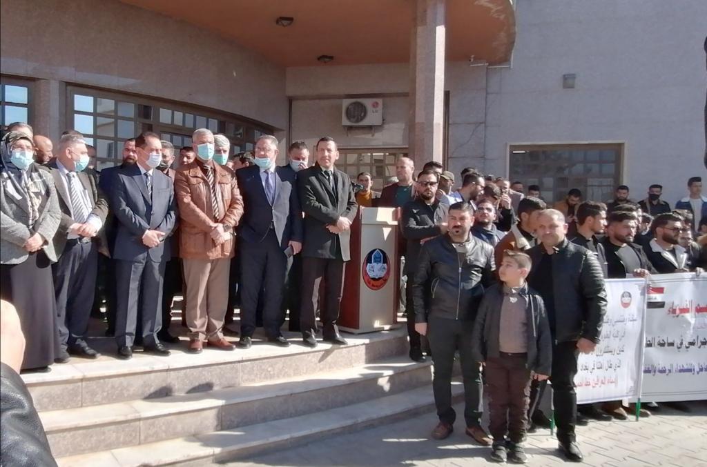 عمادة كليتنا تشارك في وقفة التضامن مع شهداء العراق التي اقامتها رئاسة جامعة الموصل