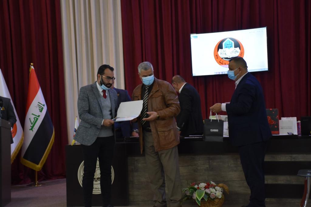 برعاية كريمة من رئيس جامعة الموصل الاستاذ الدكتور قصي كمال الدين الاحمدي وبحضور مجلس الجامعة وعدد من رؤساء الجامعات في المدينة أقيمت اليوم في المنتدى العلمي والادبي احتفالية يوم الوفاء لتكريم عدد من القامات العلمية والإدارية في الجامعة. وقد كرمت عمادة كليتنا عدد من منتسبيها في هذه الاحتفالية من خلال تقديم السيد عميد الكلية الدكتور محمد يونس العلاف الشهادات التقديرية والهدايا لهم وهم كل منالأستاذ الدكتور موفق محمود احمدالاستاذ الدكتور المرحوم مظفر عمرالموظف المتقاعد المرحوم ناظم سالم قبع