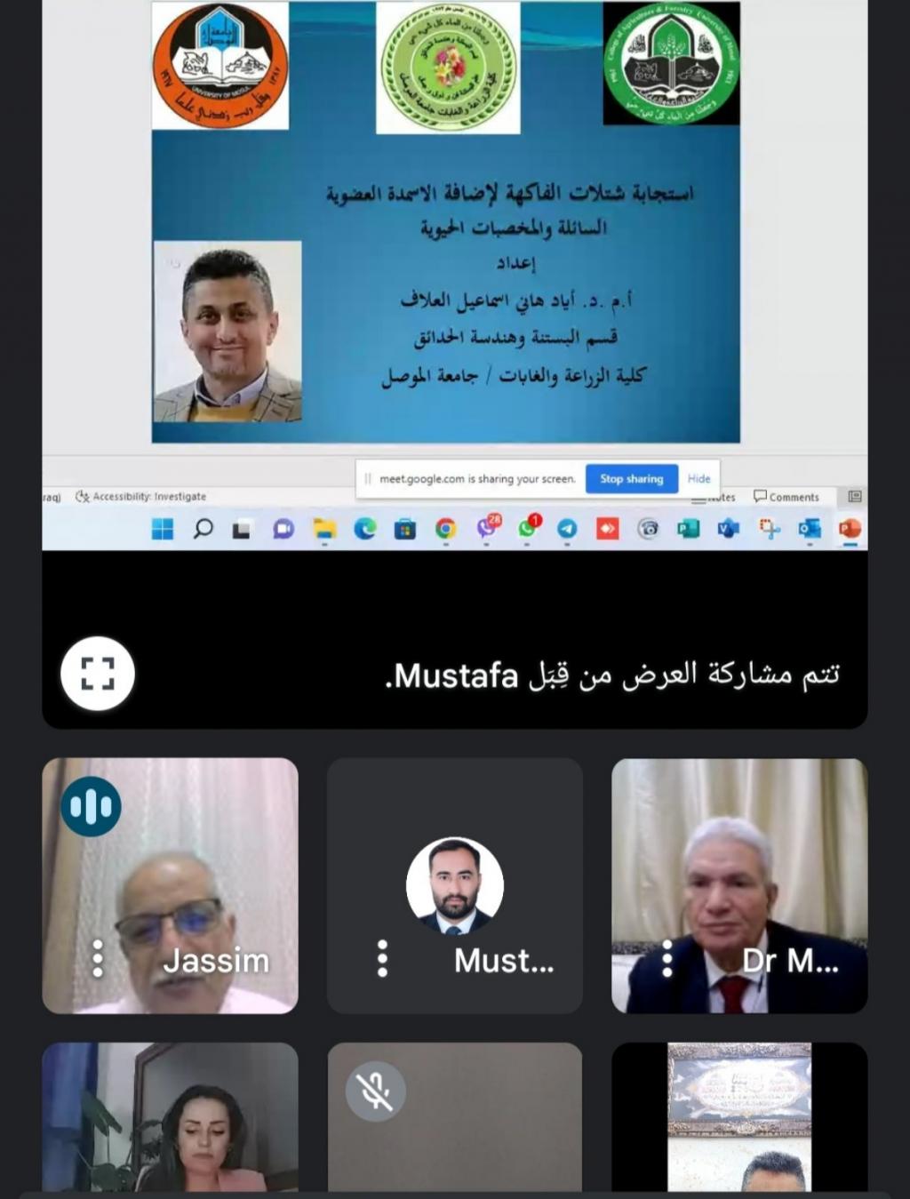 برعاية السيد عميد كلية الزراعة والغابات الاستاذ الدكتور محمد يونس العلاف وباشراف السيد رئيس القسم الاستاذ الدكتور علاء هاشم الطائي اقام قسم البستنة وهندسة الحدائق ورشة علمية الكترونية بعنوان الزراعة النظيفة نحو زراعة مستدامة وبيئة نظيفة.