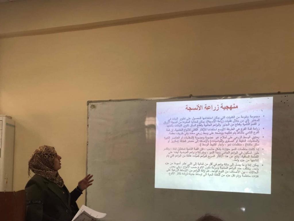 حلقة دراسية للطالبة الاء عمر الموسومة ( إكثار اشجار الغابات بواسطة زراعة الانسجة ) بإشراف الدكتورة صمود حسين علي