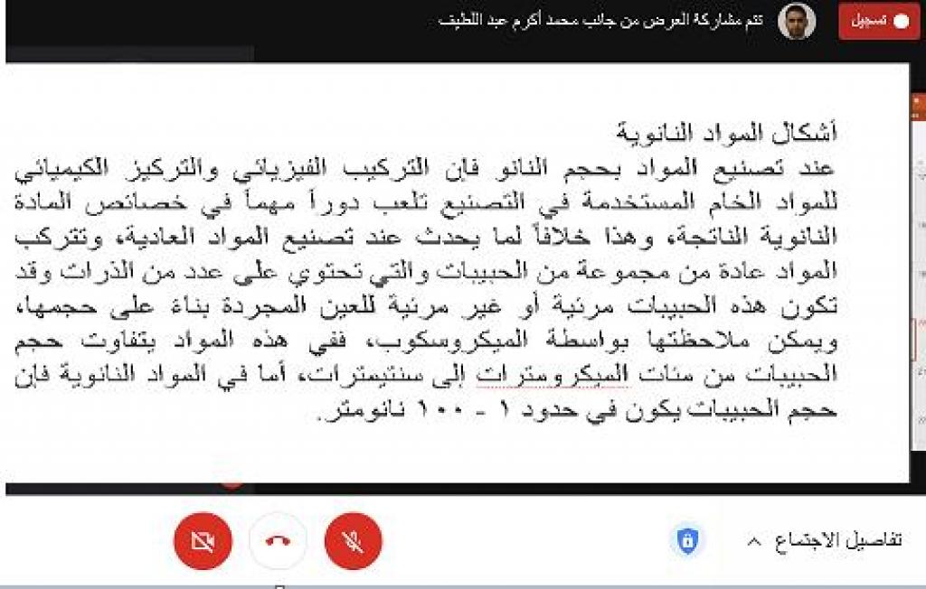 برعاية السيد عميد كلية الزراعة والغابات الدكتور محمد يونس العلاف وبأشراف الدكتور محمد صبحي الطويل رئيس القسم اقام قسم المحاصيل الحقلية دورة تدريبية تحت عنوان (تحضير المواد النانوية الحيوية وغير الحيوية من المواد الخام) اذ تضمن منهاج اليوم الأول محاضرة للدكتور محمد اكرم العبيدي بعنوان (مقدمة عن المواد النانوية) و(أجيال تقنية النانو) كما القى الدكتور عمر عبدالموجود محاضرة بعنوان ( التعامل الامن مع المواد النانوية،المواد النانوية الامنة)