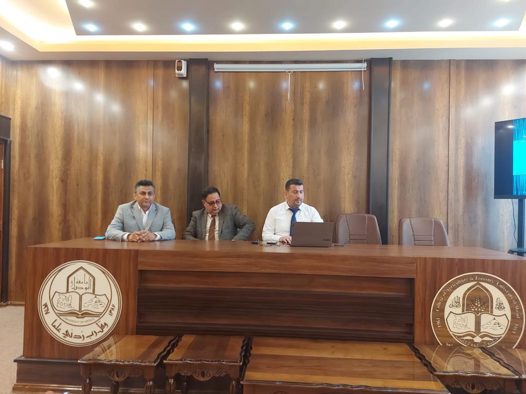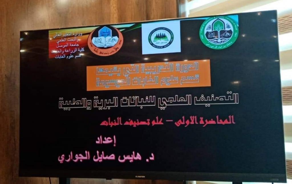 برعاية السيد عميد الكلية الاستاذ الدكتور محمد يونس العلاف وباشراف السيد رئيس القسم الدكتور عمار جاسم اليوسف اقام قسم علوم الغابات بالتعاون مع وحدة التعليم المستمر في كليتنا دورة تدريبية بعنوان التصنيف العالمي للنباتات البرية والعطرية شارك فيها عدد من موظفي مديرية زراعة نينوى.