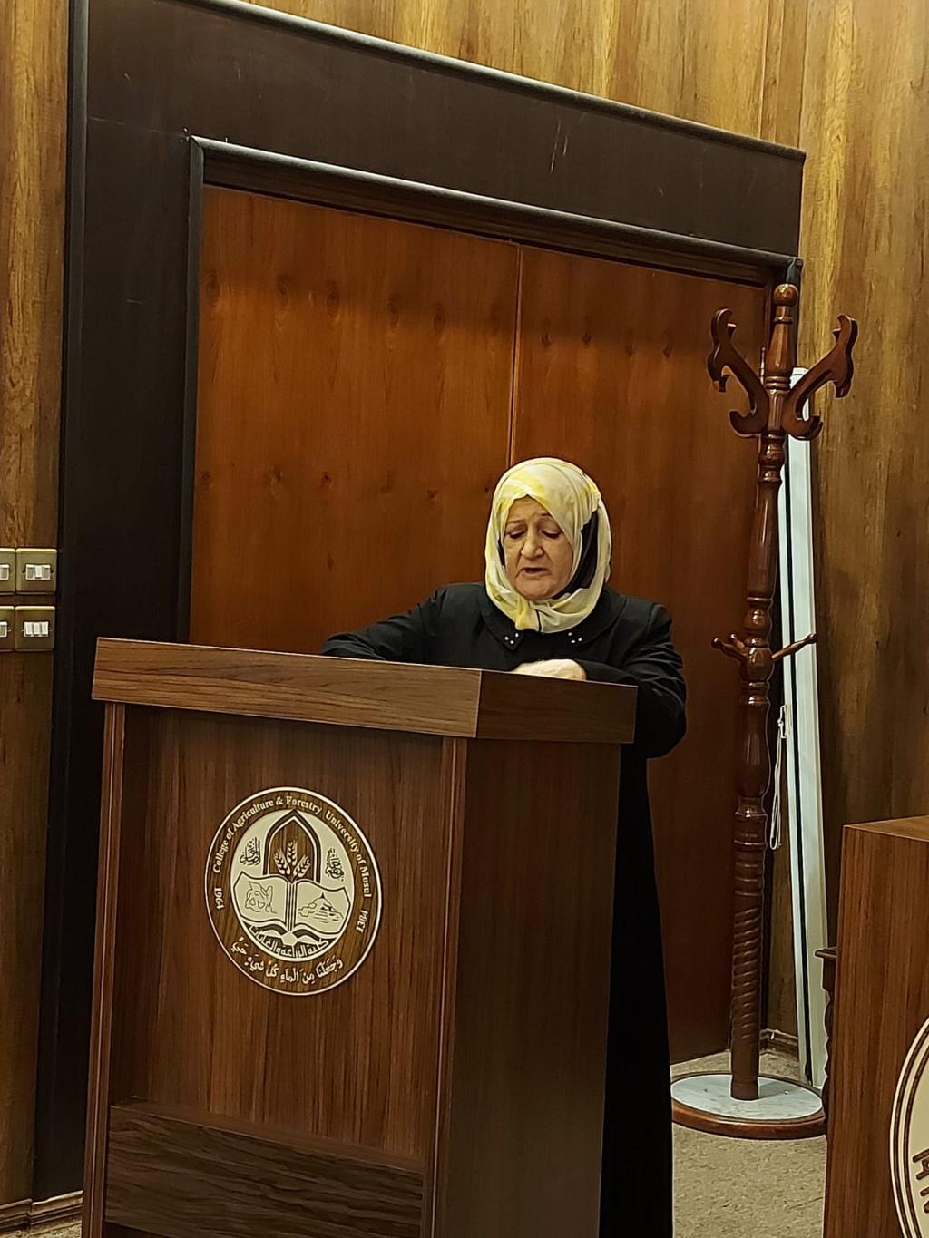 بحضور السيد عميد الكلية الاستاذ الدكتور محمد يونس العلاف ومعاونيه للشؤون العلمية والإدارية اقام قسم وقاية النبات في كليتنا حفل تأبيني على روح الفقيدة التدريسية الأستاذ المساعد الدكتورة ندى صبيح عثمان التي وافتها المنية اثر حادث مرض عضال.