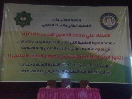 برعاية السيد وزير التعليم العالي والبحث العلمي شاركت كلية الزراعة والغابات في الندوة العلمية الخاصة بالمكتبة الافتراضية العلمية العراقية والتي أقيمت في جامعة بغداد للمدة من 19-21/تشرين الثاني /2012 والموسومة " دور المكتبة الافتراضية في تطوير البحث العلمي " وذلك لغرض مناقشة أهم المستجدات في ما ينشر في المكتبة من بحوث لدور نشر عالمية والتعرف على كيفية الاشتراك في المكتبة ، وقد مثل الكلية في هذه الندوة وفد من تدريسي الكلية ضم السادة :د.احمد محمد علي / قسم علوم الأغذيةد.حميد حمود علي / قسم وقاية النباتالسيد أياد هاني العلاف / قسم البستنة وهندسة الحدائقالسيد أياد طارق محمود / قسم البستنة وهندسة الحدائقالسيد احمد خير الدين عبد السلام / قسم علوم التربة والموارد المائيةالسيد وسام خزعل خالد / قسم البستنة وهندسة الحدائق