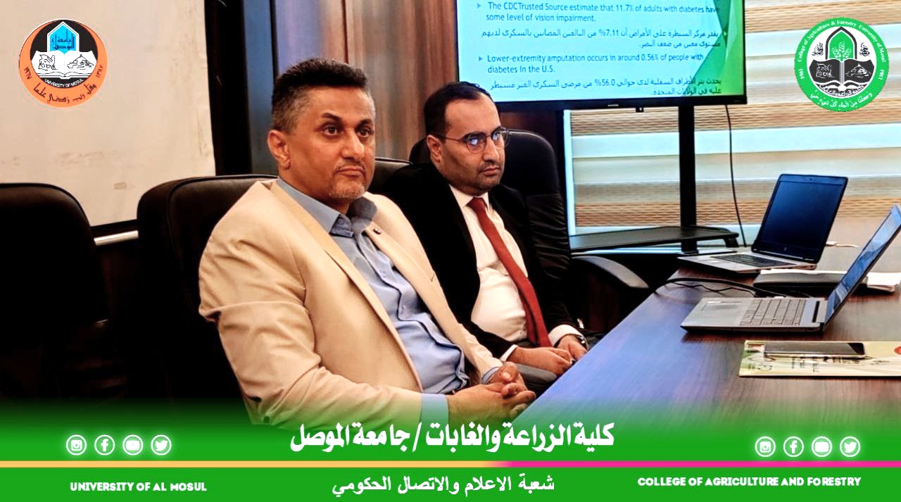 برعاية السيد عميد الكلية الاستاذ الدكتور محمد يونس العلاف أقامت شعبة الإعلام والاتصال الحكومي في كلية الزراعة والغابات بالتعاون مع دائرة صحة نينوى ورشة عمل بعنوان ( داء السكري – العادات والمفاهيم الخاطئة) اليوم الأربعاء الموافق ٦ / ١١ / ٢٠٢٤ على قاعة عمادة الكلية حضرها السيد عميد الكلية وعدد من تدريسي وموظفي وطلبة كليتنا،هدفت محاضرة الورشة التي ألقاها الدكتور بشار محمد زكي الجادر طبيب اختصاص في دائرة صحة نينوى إلى أهمية التوعية والكشف المبكر عن داء السكري من خلال متابعة بعض الاعراض التي يصاب بها الفرد من اجل العلاج والتشافي. واهمية الطرق المتبعة لتنظيم السكري وابرز العلاجات المستخدمة لتقليل مضاعفاته، والمخاطر والمضاعفات لمرض السكري في المدى البعيد والقريب ان تم اهمال مستوى السكر غير المنتظم وكذلك متى تبدأ هذه المضاعفات بالظهور مع توضيح المفاهيم الخاطئة لمرض السكري وكيفية التعامل معها وتصحيحها.وبين الدكتور بشار في محاضرته اهمية التشخيص ومعرفة ماذا نراقب للكشف المبكر عن السكري مع توضيح الآليات الحديثة المتبعة لمعرفة مستوى السكر المنتظم، وضرورة اجراء الفحوصات الدورية للسكر التراكمي.