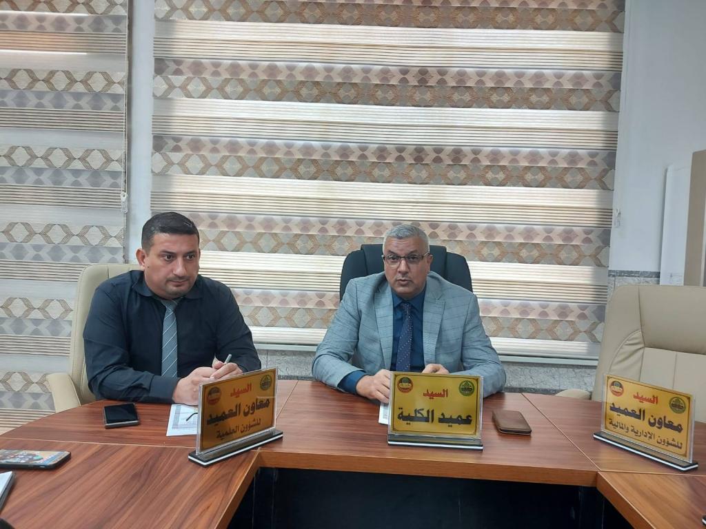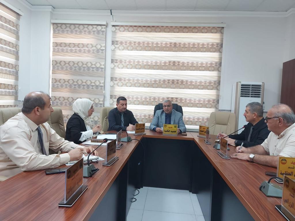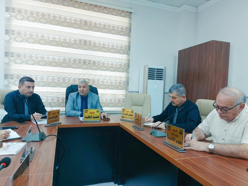 عقد مجلس الكلية للدراسة المسائية برئاسة السيد عميد الكلية الاستاذ الدكتور محمد يونس العلاف وحضور معاونه العلمي الاستاذ الدكتور علي فاروق المعاضيدي ورؤساء أقسام (الانتاج الحيواني والبستنة وهندسة الحدائق وعلوم الأغذية والمكائن والالات الزراعية) اجتماعه الدوري اليوم لمناقشة القضايا المدرجة على جدول أعماله.شعبة الإعلام والعلاقات العامة