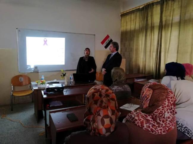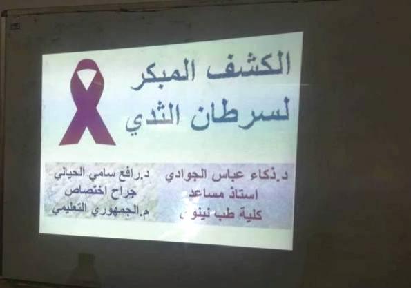 اقامت عمادة كلية الزراعة والغابات محاضرة توعوية للكشف المبكر عن سرطان الثدي قام بإلقائها كل من الدكتورة ذكاء عباس الجوادي التدريسية في كلية طب نينوى والدكتور رافع سامي الحيالي الجراح الاختصاص في مستشفى الجمهوري التعليمي في الموصل ، وفي بداية المحاضرة رحب الدكتور فراس كاظم الجبوري معاون عميد كلية الزراعة والغابات للشؤون الادارية بهما شاكرا لهما حضورهما وإلقائهما للمحاضرة ، وقدمت الدكتورة ذكاء في بداية المحاضرة مقدمة عن المرض وعوامل الخطورة وطرق الوقاية والفحوصات وأهمية الكشف المبكر وطرق الفحص الذاتي والجديد في طرق العلاج بالإضافة الى شرح عملي لطريقة الفحص الذاتي بينت خلالها أن اغلب حالات الإصابة بسرطان الثدي يمكن كشفها في المنزل من خلال الفحص الذاتي .وحضر المحاضرة عدد من أعضاء هيئة التدريس وموظفات الكلية وجمع من الطالبات.