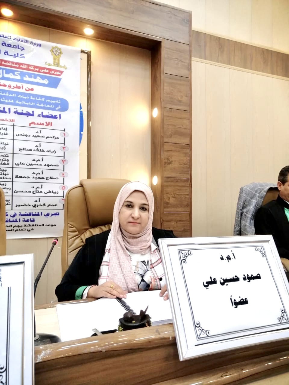 ضمن النشاطات العلمية لتدريسي كليتنا شارك كل من الاستاذ الدكتور مزاحم سعيد البك(رئيساً) والدكتورة صمود حسين علي(عضواً) التدريسيان في قسم علوم الغابات في كليتنا في لجنة مناقشة أطروحة دكتوراه للباحث مهند كمال مصطفى في قسم البستنة وهندسة الحدائق في كلية الزراعة /جامعة تكريت عن أطروحته الموسومة ” تقييم كفاءة نبات الدفلة في المعالجة النباتية لملوثات شركة نفط الشمال ) .