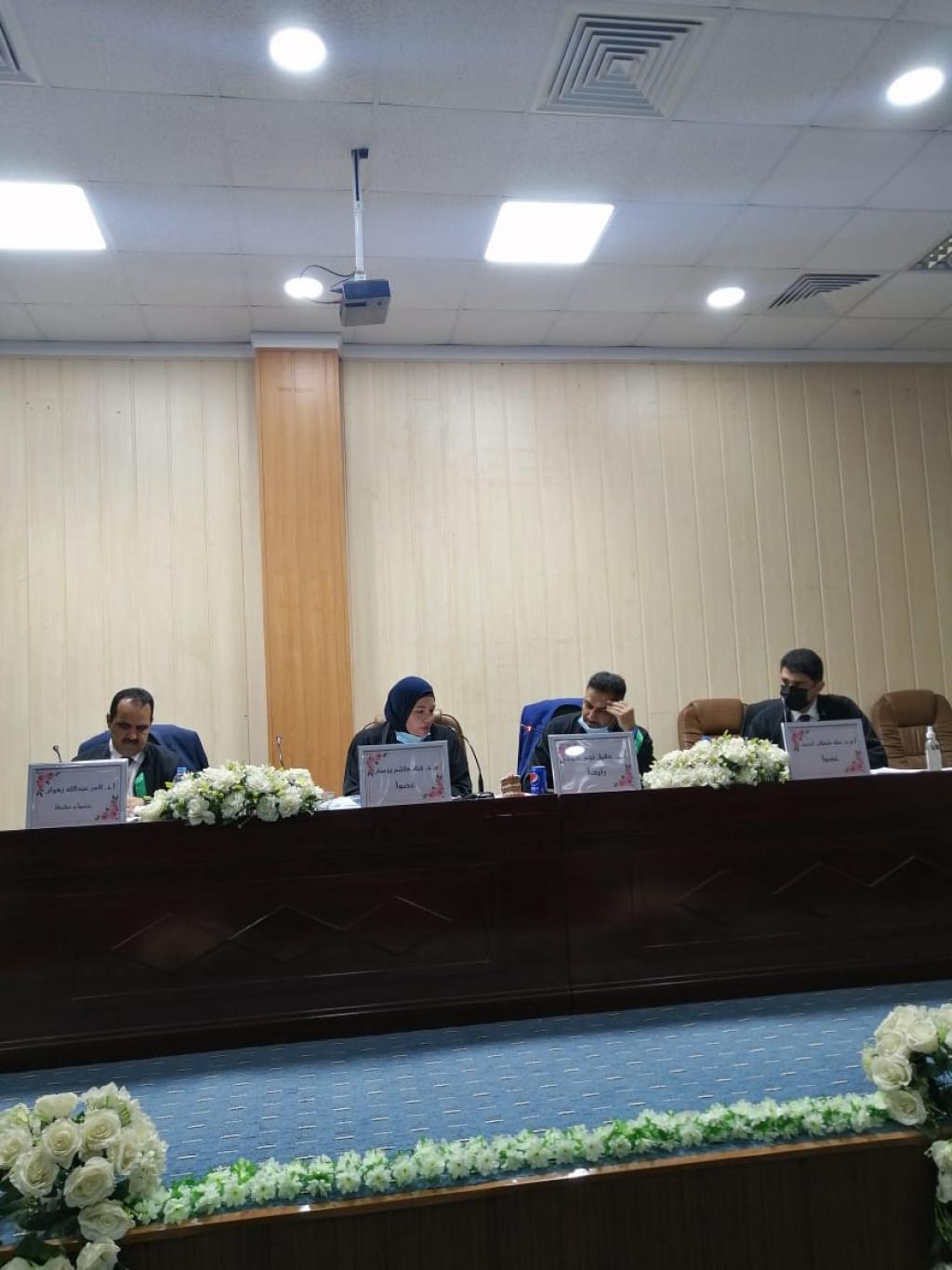 مشاركة تدريسية من كليتنا في لجنة مناقشة رسالة ماجستير في جامعة تكريت.