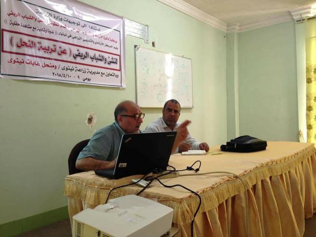 ضمن المبادرات التي يحرص على المشاركة بها تدريسي كلية الزراعة والغابات في خدمة المجتمع شارك الاستاذ الدكتور مزاحم ايوب الصائغ استاذ مادة تربية النحل في الندوة الارشادية التي اقامها المركز الارشادي التدريبي في نينوى بالتعاون مع مديرية زراعة نينوى ومنحل غابات نينوى حملت عنوان ( تربية النحل للنشئ والشباب الريفي ) وعلى قاعة المركز في الرشيدية بمشاركة (٢٥) من النشئ والشباب الريفي من اهالي منطقة تلكيف /الرشيدية،وتضمنت محاور الندوة الشروط الواجب توفرها في مكان انشاء المنحل -افراد طائفة نحل العسل -طرق تربية النحل –الامراض والحشرات التي تؤثر في حياة النحل بطريقة سيئة .