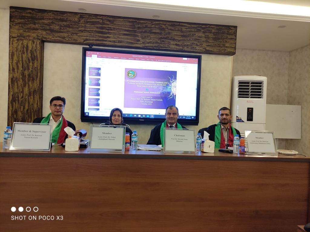 شارك الأستاذ الدكتور دريد ذنون يونس التدريسي في قسم الانتاج الحيواني في كليتنا عضوا في لجنة مناقشة طالب الماجستير محمود ياسين محمد في قسم الانتاج الحيواني في كلية علوم الهندسة الزراعية جامعة صلاح الدين -اربيل.