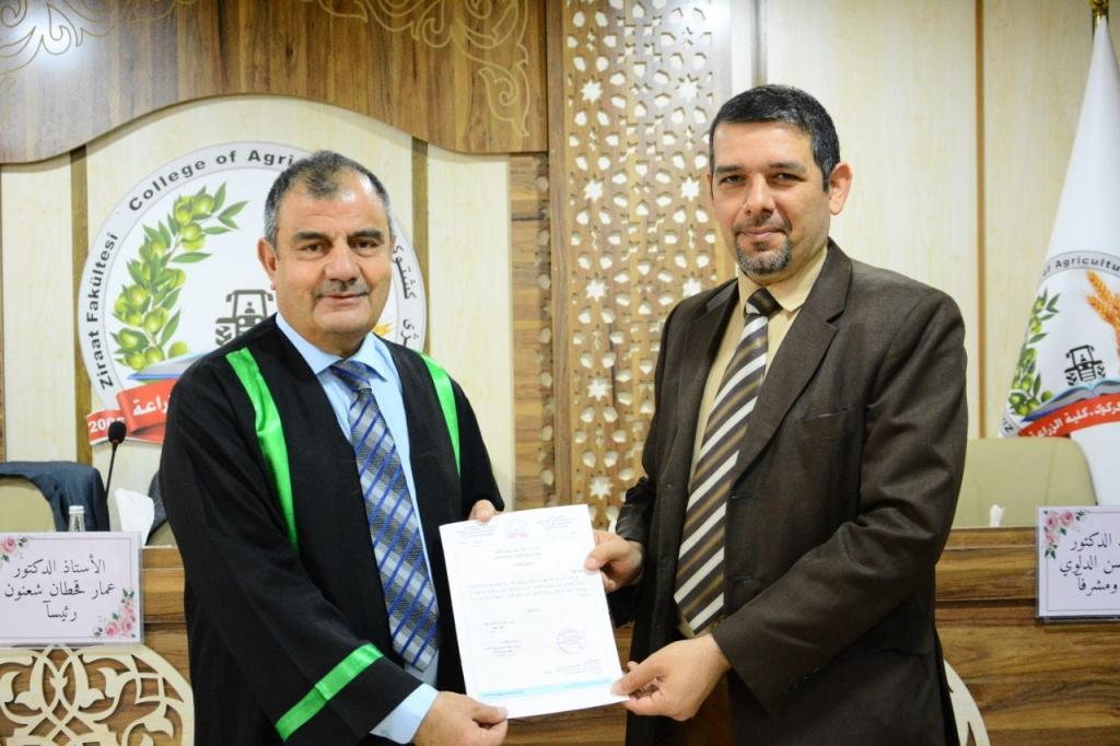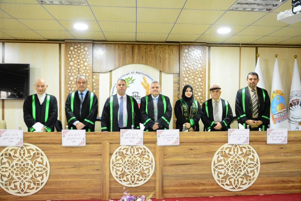 شارك الأستاذ الدكتور دريد ذنون يونس التدريسي في قسم الإنتاج الحيواني في كليتنا عضواً في لجنة مناقشة أطروحة دكتوراه في كلية الزراعة جامعة كركوك للباحثة سلمى بهجت كريم ولدراستها الموسومة دراسة مقارنة إضافة L. Carnitin والمثيونين العشبي وخليطهما في ايض زيت زهرة الشمس المضاف للعليقه في الأداء الانتاجي والفسلجي لفروج اللحم