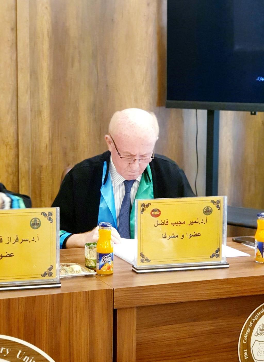 ترأس لجنة المناقشة الأستاذ الدكتور جاسم محمد علوان وعضوية الأستاذ الدكتور عمار زكي امين والاستاذ الدكتور نبيل محمد امين الامام والاستاذ الدكتورة سرفراز فتاح علي والدكتور علي محي الدين عمر وبإشراف كل من الاستاذ الدكتور نمير نجيب فاضل والاستاذ الدكتور بهرام خورشيد محمد .