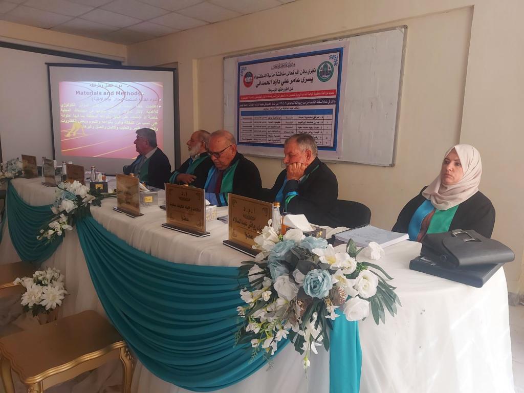 هذا وترأس لجنة المناقشة الأستاذ الدكتور موفق محمود أحمد وعضوية الاستاذ الدكتور مازن محمد إبراهيم والاستاذ الدكتور محمد وجيه محمد سعيد والاستاذ المساعد الدكتورة شيماء رياض عبدالسلام والاستاذ المساعد الدكتور رفيق محمد صالح وبأشراف الاستاذ الدكتور عبدالله محمد ذنون