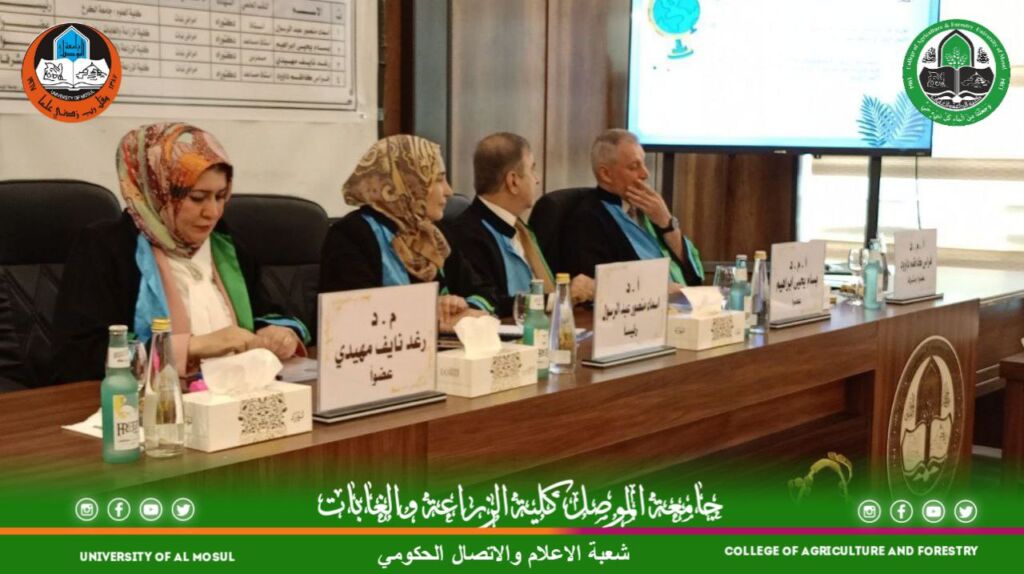 وعضوية كل من الأستاذ الدكتورة سمية خلف بدوي والدكتور طه محمد تقي والدكتور قيصر حمد غايب والدكتورة بسماء سعدالدين شيت وبإشراف وعضوية الدكتورة شيماء رياض عبدالسلام.