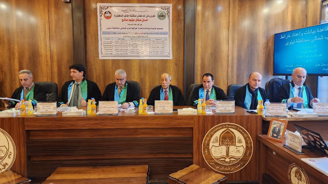 نوقشت في قسم علوم التربة والموارد المائية في كليتنا اطروحة الدكتوراه في كلية الزراعة والغابات بجامعة الموصل والموسومة (تصميم قاعدة بيانات واعداد خرائط لترب شمالي محافظة نينوى) اليوم (الخميس) الموافق (28/ 11 /2024) ،تناولت الاطروحة التي تقدم بها الطالب (أمان عادل مولود) في قسم (علوم التربة والموارد المائية) الى بيان وفرة المعلومات عن التربة والصعوبات في التعامل معها وإدارتها واستيعابها واستخدامها للاستفادة منها في مختلف المجالات وهي بحاجة ماسة إلى ظهور نظم حاسوبية لجمع البيانات وتخزينها ومعالجتها وإدارتها وتحليلها وقد أصبح هذا النظام أداة فعالة ومهمة في البحوث الحديثة لإنشاء قواعد البيانات ورسم خرائط التربة متعددة الأغراض وتحديد أساليب التكيف والإدارة المناسبة، واوصت الدراسة إلى تصميم وبناء قاعدة بيانات لموارد التربة في محافظة نينوى وإعداد خرائط التربة المختلفة بوساطة قاعدة البيانات التي تم تصميمها.