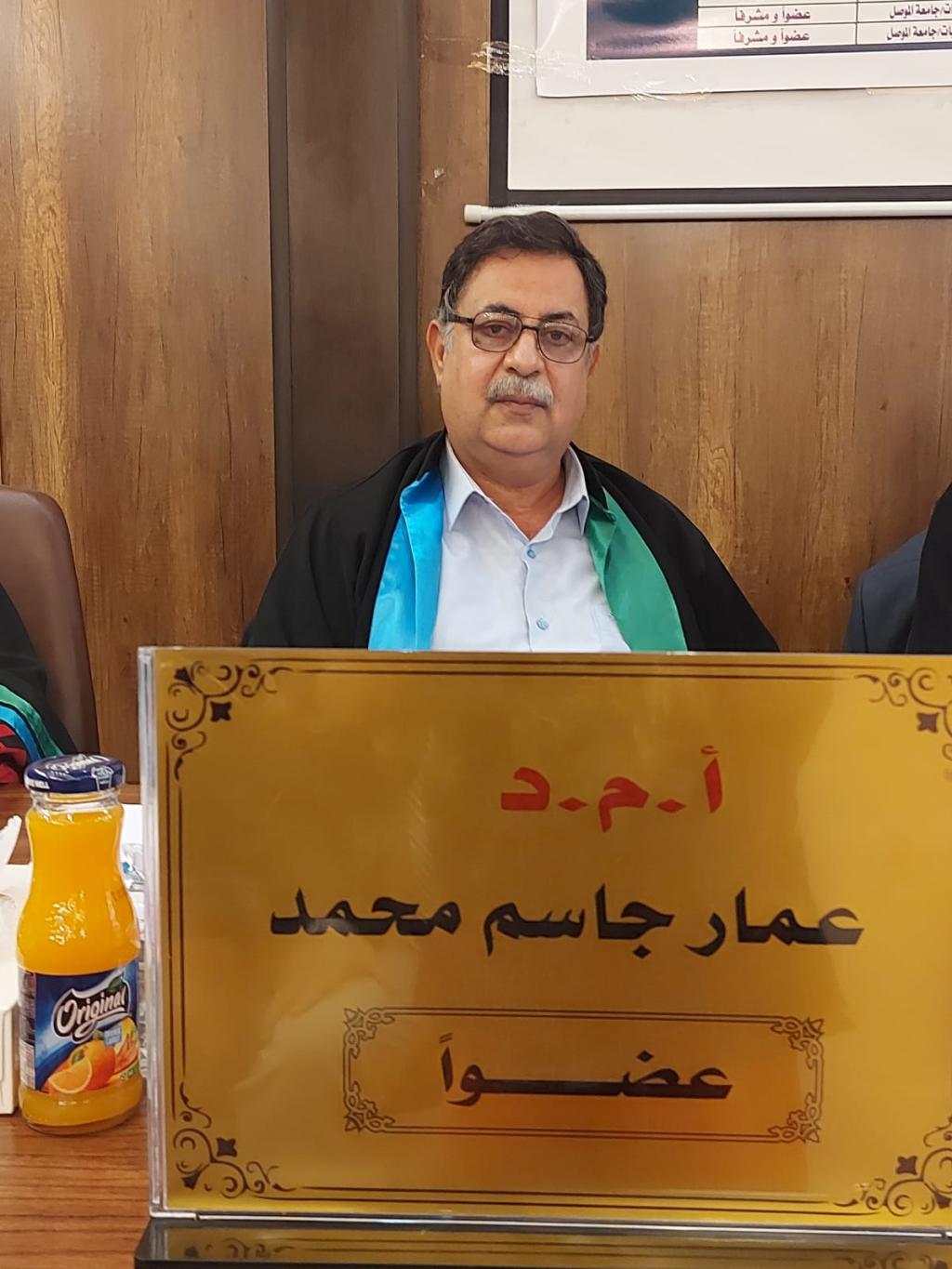 هذا وترأس لجنة المناقشة الأستاذ الدكتور جاسم خلف شلال وعضوية الأستاذ الدكتور تنزيه مجيد حميد والاستاذ المساعد الدكتور عمار جاسم اليوسف والاستاذ المساعد الدكتور احمد بهجت خلف والاستاذ المساعد الدكتورة صمود حسين وبإشراف كل من الاستاذ الدكتور مزاحم سعيد البك والاستاذ الدكتور محمد يونس العلاف .
