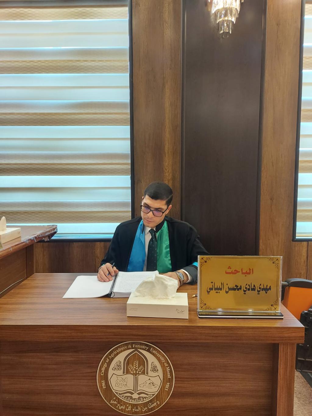 نوقشت اليوم وعلى قاعة عمادة الكلية اطروحة الدكتوراة في قسم علوم الغابات والتي تقدم بها الطالب مهدي هادي محسن والموسومة ( التوزيع الجغرافي والتحليل المكاني في تركيب مشاجر الصنوبر والبلوط في محافظة دهوك ) حضر جانب منها معاوني العميد للشؤون العلمية والإدارية.