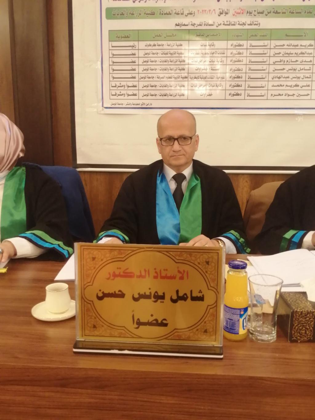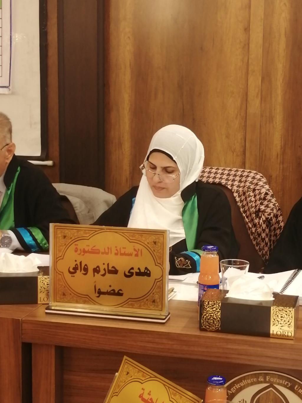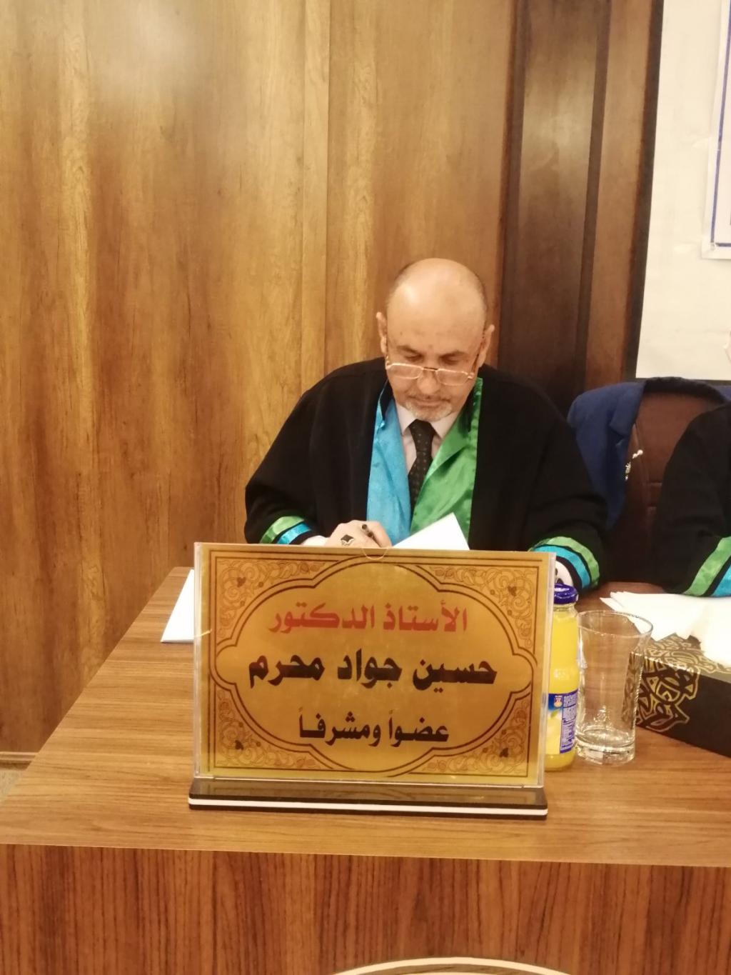 وقد ترأس لجنة المناقشة الأستاذ الدكتور كريم عبدالله حسن وعضوية كل من الأستاذ الدكتور عبدالكريم سليمان حسن والأستاذ الدكتورة هدى حازم وافي والأستاذ الدكتور شامل يونس حسن والأستاذ الدكتورة شمال يونس عبدالهادي وبإشراف كل من الأستاذ الدكتور علي كريم محمد والأستاذ الدكتور حسين جواد محرم.