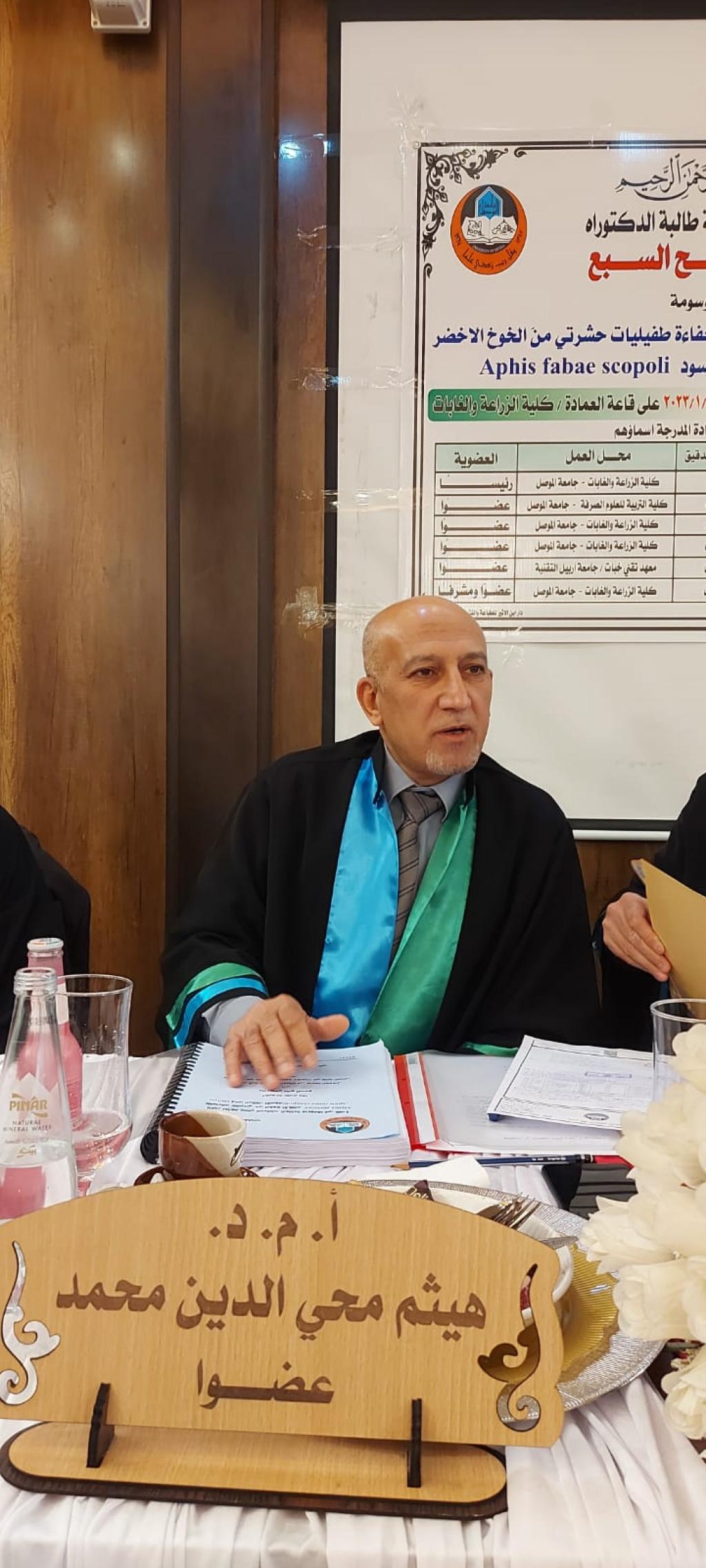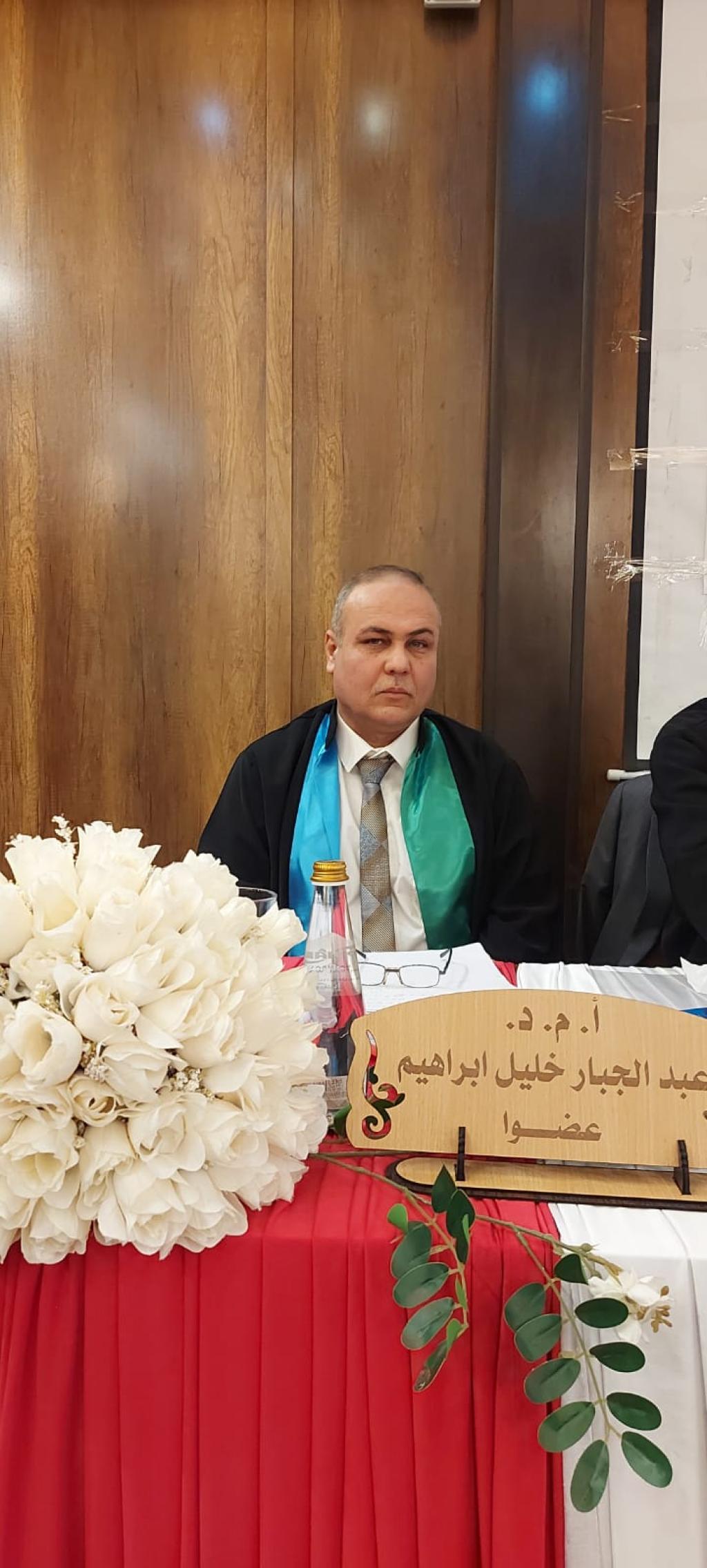 هذا وترأس لجنة المناقشة الأستاذ الدكتور عماد قاسم محمد وعضوية الأستاذ الدكتور عدنان موسىىٰ محمد والاستاذ المساعد الدكتور هيثم محي الدين محمد والاستاذ المساعد الدكتور عبدالجبار خليل إبراهيم والاستاذ المساعد الدكتور زيور زينل عمر وبإشراف الاستاذ الدكتورة جهينة إدريس محمد .