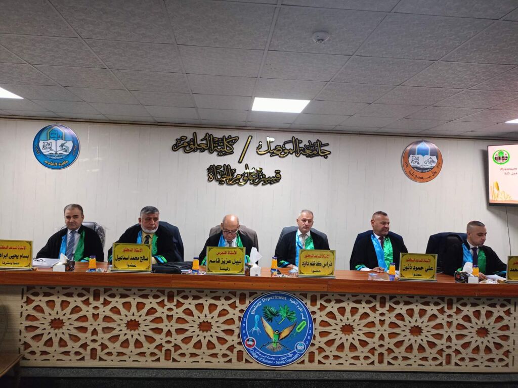 وقد ترأس لجنة المناقشة الاستاذ الدكتورة خالدة عبدالكريم حسن وعضوية كل من الدكتور عبدالقادر عبش سباك والدكتور خالد انور خالد والدكتور قحطان درويش عيسى والدكتورة رند عبدالهادي غزال وبإشراف الأستاذ المتمرس الدكتور محمد علي جمال والاستاذ الدكتورة وحيدة علي أحمد.