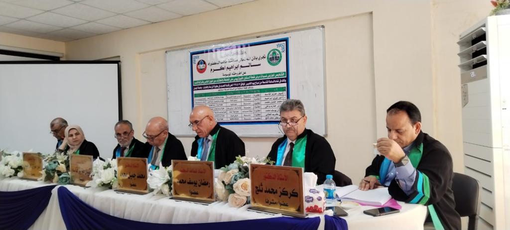 حترأس لجنة المناقشة الاستاذ الدكتور نبيل عزيز قاسم وعضوية الاستاذ الدكتور انور نوري ابراهيم والاستاذ الدكتور محمد جميل محمد والاستاذ الدكتور هدى حازم وافي والاستاذ المساعد الدكتور رمضان يوسف محمد وباشراف الاستاذ الدكتور كركز محمد ثلج والاستاذ الدكتور علي كريم الطائي