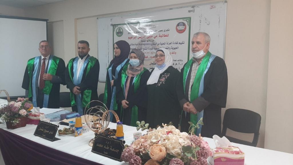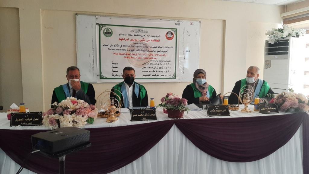 مناقشة تقييم كفاءة العزل المحلية من البكتريا في التأثير على الصفات الحيوية والتغييرات النسيجية لدودة الشمع الكبرى في رسالة ماجستير في قسم وقاية النبات