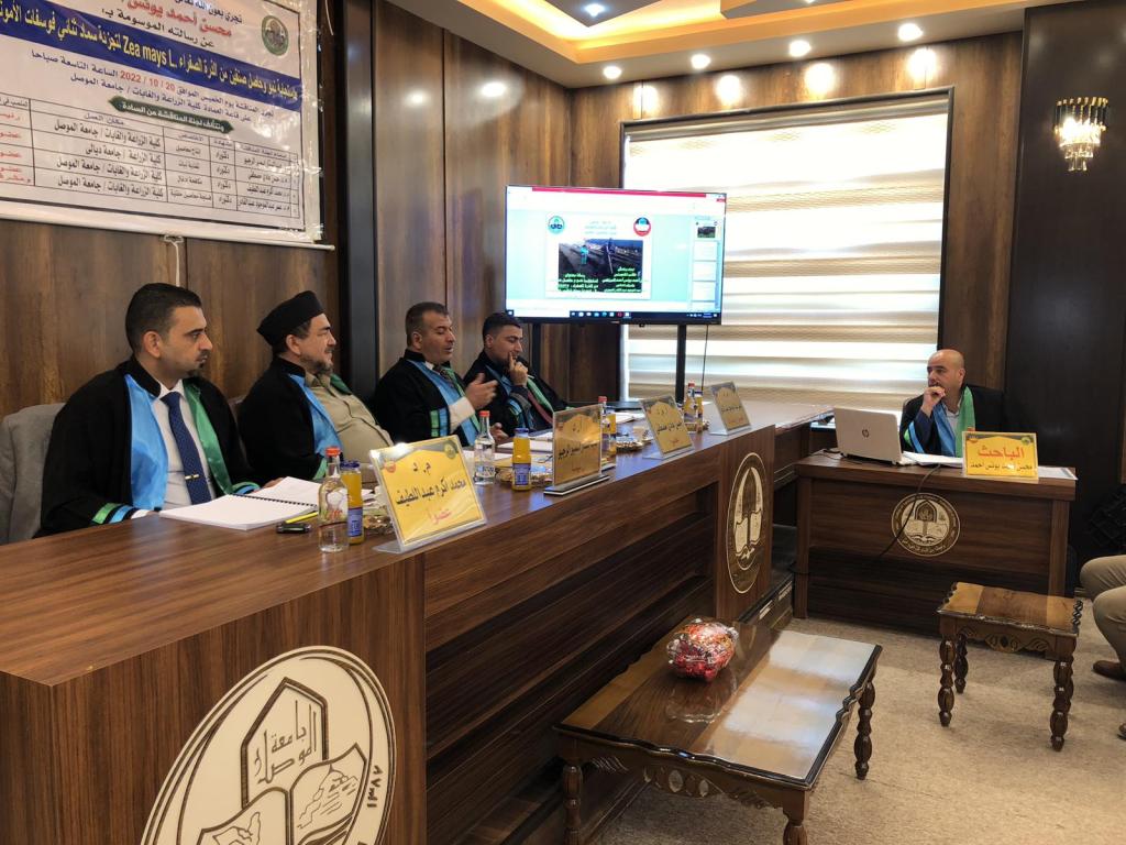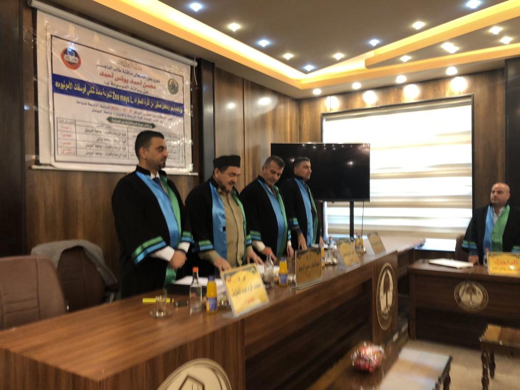 هذا وترأس لجنة المناقشة الاستاذ الدكتور عبدالستار اسمير الرجبو وعضوية الاستاذ المساعد الدكتور حسن هادي مصطفى والدكتور محمد اكرم عبداللطيف وبإشراف الدكتور عمر عبدالموجود عبدالقادر .