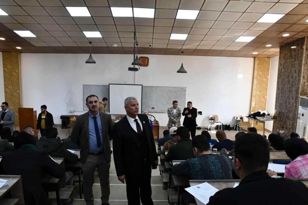 السيد عميد الكلية يتفقد بدء امتحانات طلبة المرحلة الأولى للدراستين الصباحية والمسائية في كليتنا.