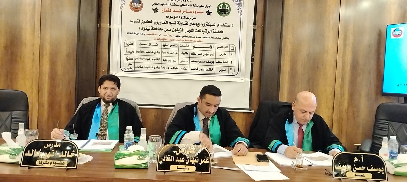 وقد ترأس لجنة المناقشة الدكتور عمر نبهان عبدالقادر وعضوية الأستاذ المساعد حسن يوسف حسن وبإشراف وعضوية الدكتور خالد أنور خالد .