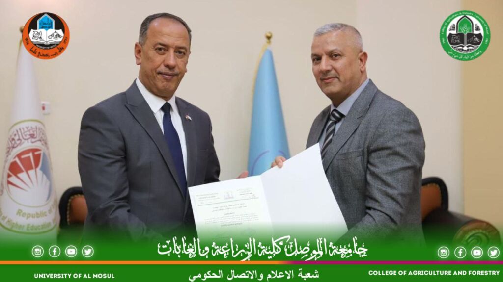 نوقشت صباح اليوم الخميس والموافق ١٠/١٠ وعلى قاعة عمادة الكلية رسالة دبلوم عالي في قسم علوم الغابات والتي تقدم بها الطالب ريان عبد الستار علي (والموسومة تاثير التنضيد والغمر بالكايتين في انبات بذور ونمو شتلات Acacia mangium ). تضمنت الدراسة تأثير مدد التنضيد البارد والكاينتين في انبات بذور ونمو شتلات الاكاسيا، أظهرت نتائج التأثير المنفرد للتنضيد تفوق الشتلات التي نُضدت بذورها لمدة شهرين في معظم صفات الانبات والصفات المظهرية للشتلات منها (سرعة الانبات، ارتفاع الشتلات، طول الفرع، دليل قوة الفرع، طول الجذر، دليل قوة الجذر، وعدد الأوراق، المساحة الورقية، الوزن الجاف للمجموع الخضري، الوزن الجاف للمجموع الجذري). وقد ترأس لجنة المناقشة الدكتورة صمود حسين علي وعضوية الدكتور عمر مظفر عمر وبإشراف الدكتورة شهلة عبد الرزاق بشير.