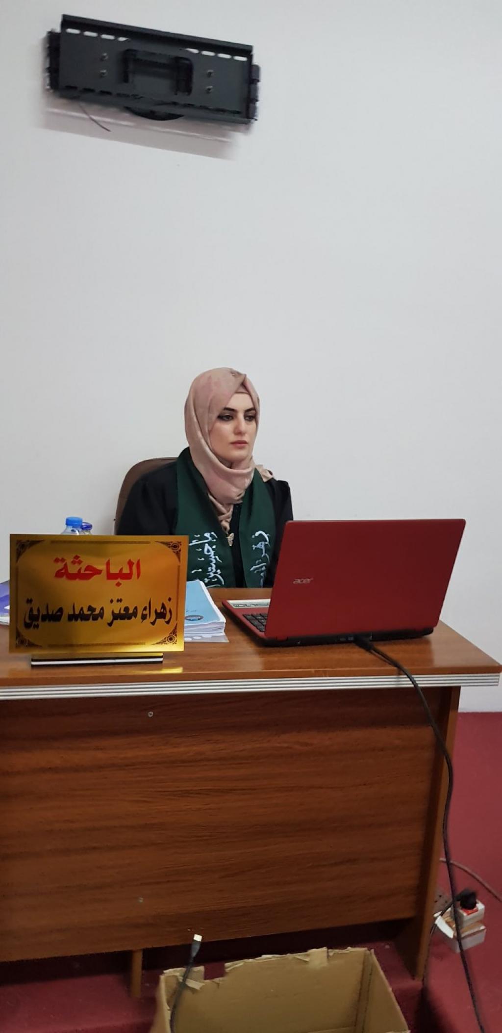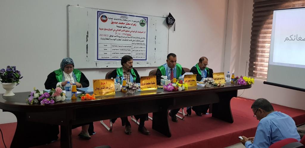 وترأس لجنة المناقشة الأستاذ المساعد الدكتور اسكندر حسين علي وعضوية الدكتور عماد عبد العزيز احمد والدكتور عقبة محمد نوري وبأشراف الدكتورة اسوان عبد القادر زيدان