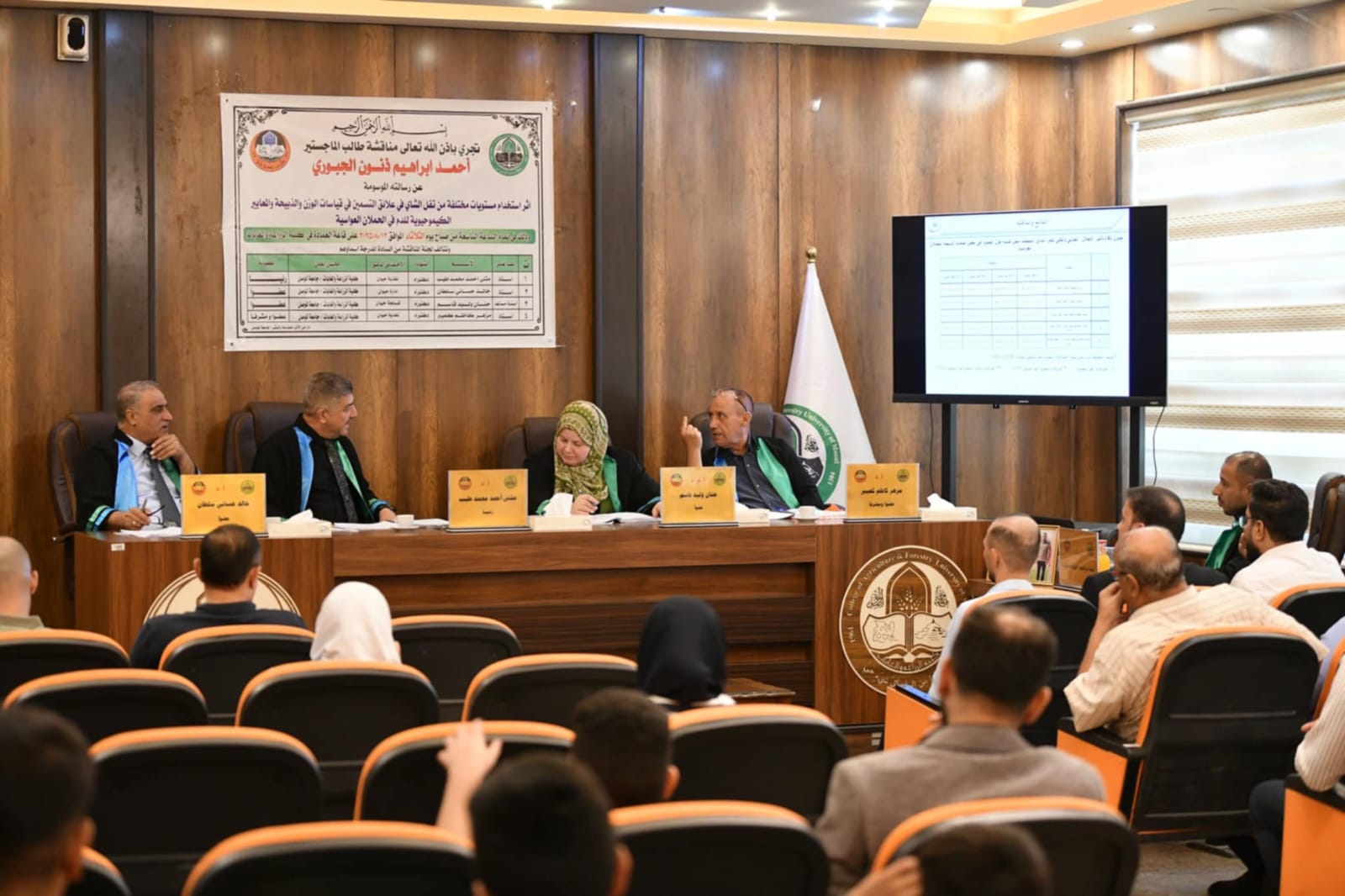 وقد ترأس لجنة المناقشة الاستاذ الدكتور مثنى احمد محمد طيب وعضوية الأستاذ الدكتور خالد حساني سلطان والاستاذ المساعد الدكتور حنان وليد قاسم وبإشراف الأستاذ الدكتور مزهر كاظم كعيبر.
