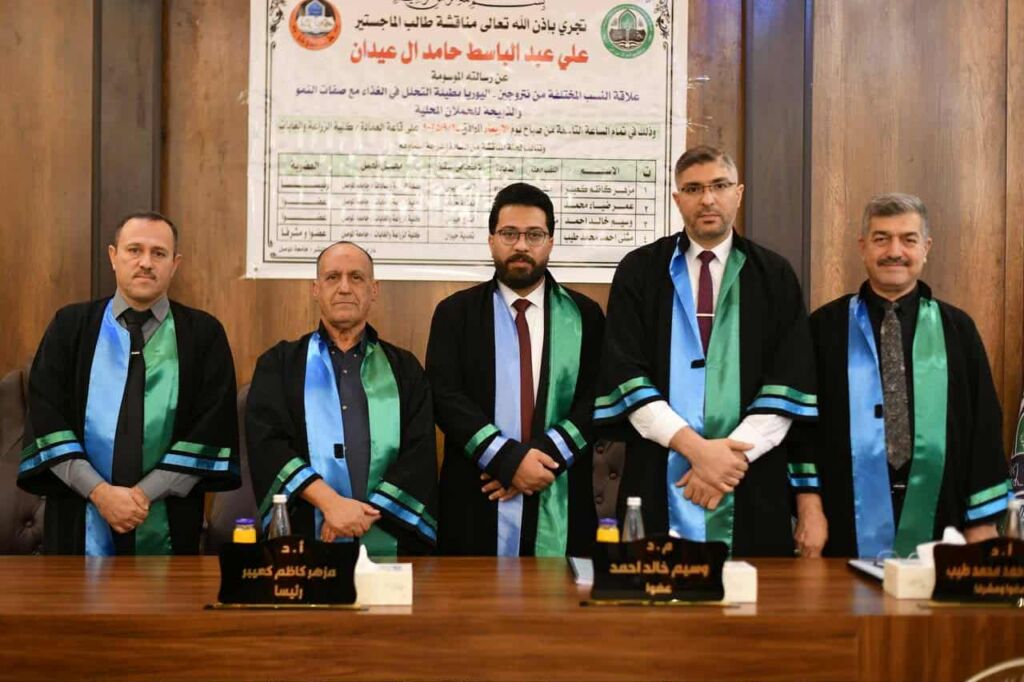 نوقشت في قسم الانتاج الحيواني في كلية الزراعة والغابات بجامعة الموصل رسالة الماجستير الموسومة ( دراسة الاستجابة لاضافة الاحماض الامينية المحمية لعلائق الحملان محددة التغذية وعلاقتهما بتركيب الذبائح ) اليوم الخميس الموافق ٢٥-٩-٢٠٢٥ حضر جانب منها السيد عميد الكلية الاستاذ الدكتور علي فاروق المعاضيدي ومعاونيه للشؤون العلمية والادارية.