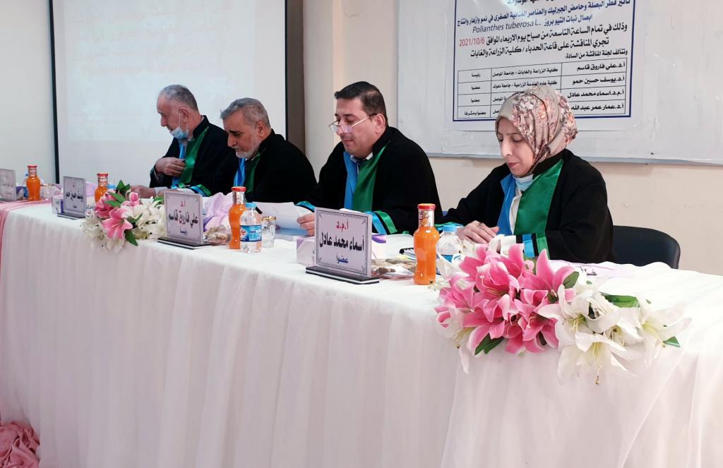 مناقشة رسالة ماجستير في قسم البستنة وهندسة الحدائق.