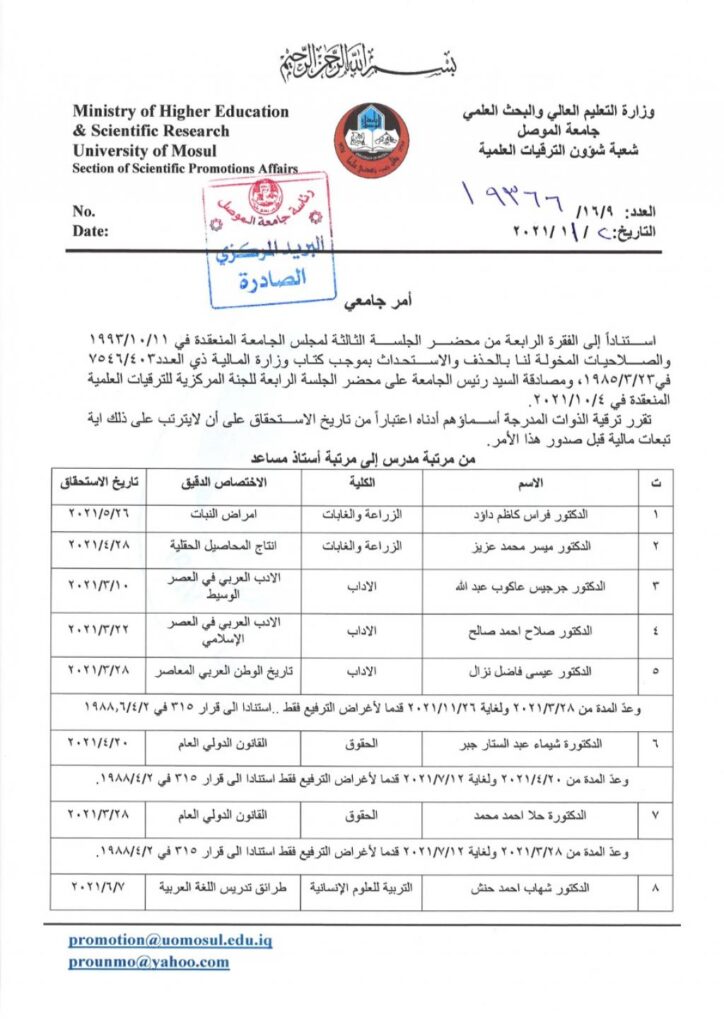 بحضور الأستاذ الدكتور محمد يونس العلاف عميد الكلية نوقشت وعلى قاعة الحدباء في عمادة الكلية رسالة الماجستير في قسم البستنة وهندسة الحدائق والتي تقدم بها الطالب عامر مقبل عبد الحميد والموسومة (استجابة صنفين من الخس لتغطية التربة والتسميد العضوي في البيت البلاستيكي غير المدفأ) ترأس لجنة المناقشة الأستاذ الدكتور حسين جواد محرم البياتي وعضوية الأستاذ الدكتور عبد المنعم سعدالله خليل والأستاذ الدكتور فاضل فتحي رجب وبأشراف الدكتور وليد بدر الدين الليله.