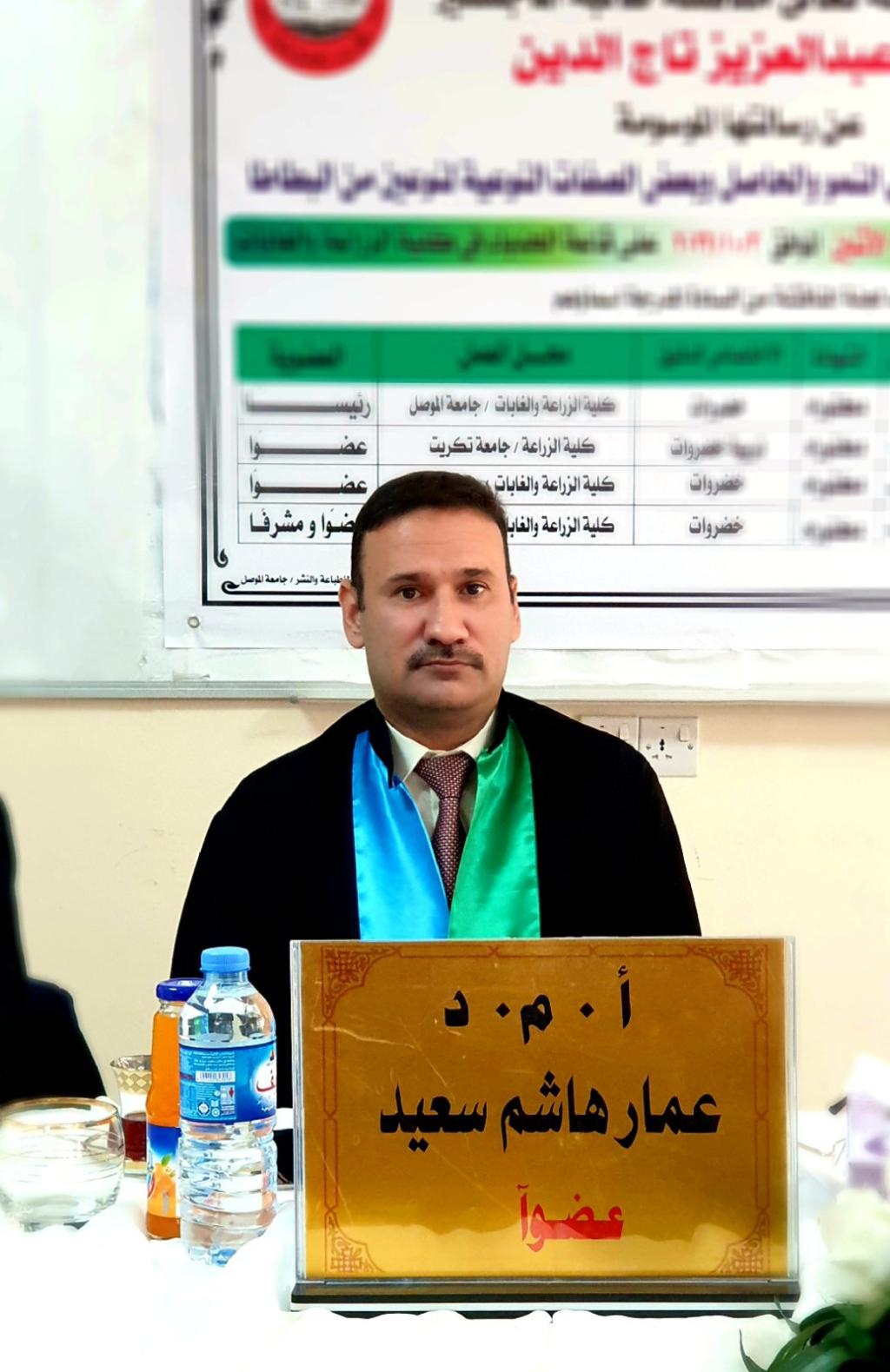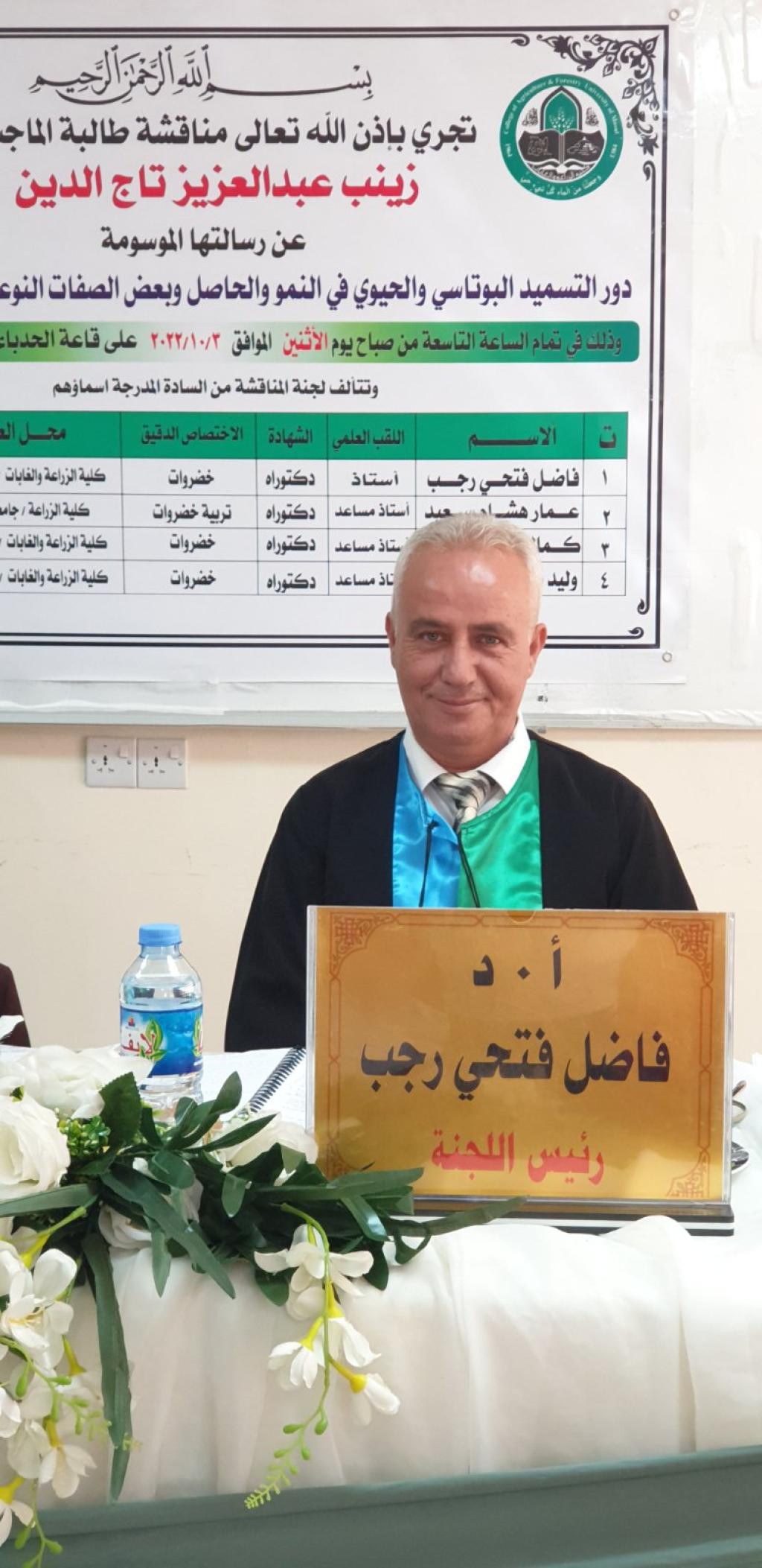 هذا وترأس لجنة المناقشة الأستاذ الدكتور فاضل فتحي رجب وعضوية كل من الدكتور عمار هاشم سعيد والدكتور كمال بنيامين ايشو وبأشراف الدكتور وليد بدر الدين الليله.
