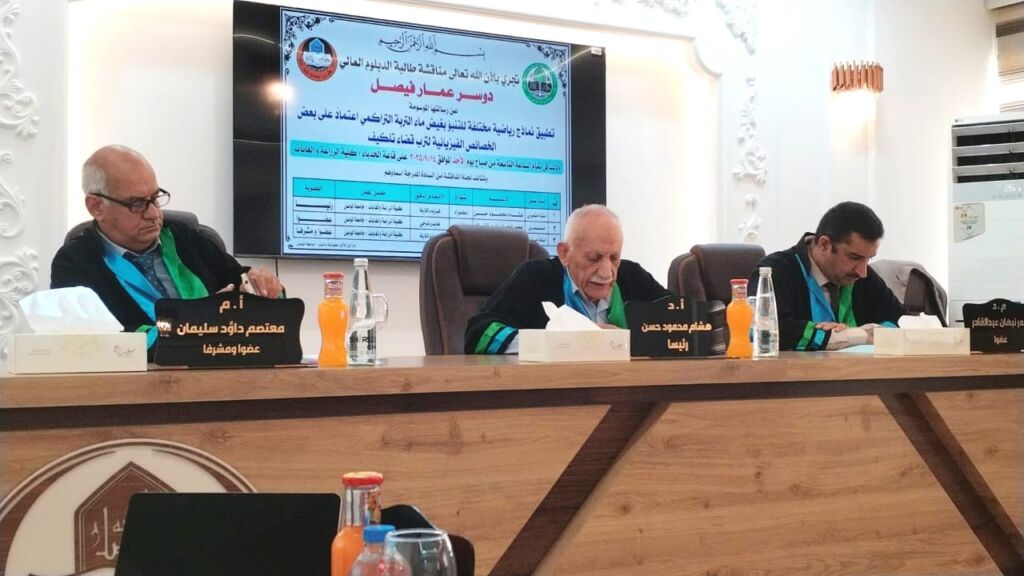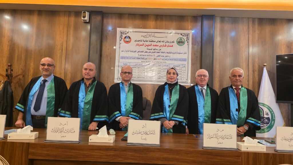 نوقشت في قسم البستنة وهندسة الحدائق في كلية الزراعة والغابات بجامعة الموصل رسالة الماجستير الموسومة (دور مستخلص الطحالب البحرية Stimax Nature وفطر Trichoderma في صفات النمو والإنتاجية لصنفين من الخس Lactuca sativa L ) اليوم الاحد الموافق (١٤ / ٩/ ٢٠٢٥) تقدمت بها